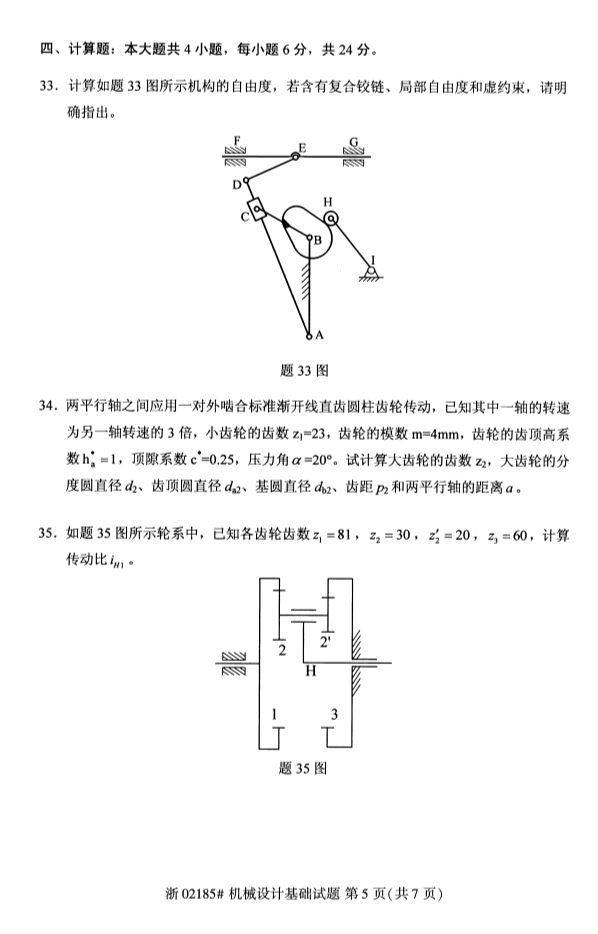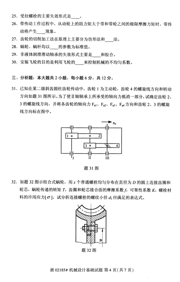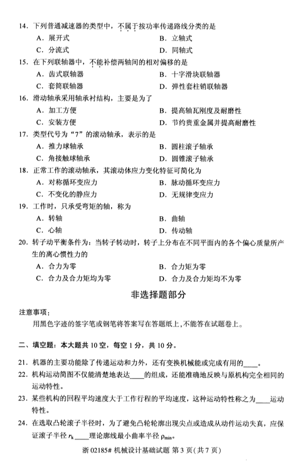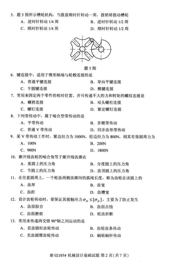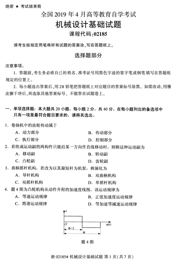 真题下载:全国2019年4月自考02185机械设计基础真题