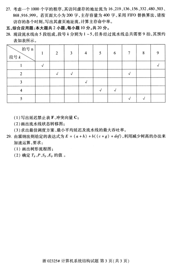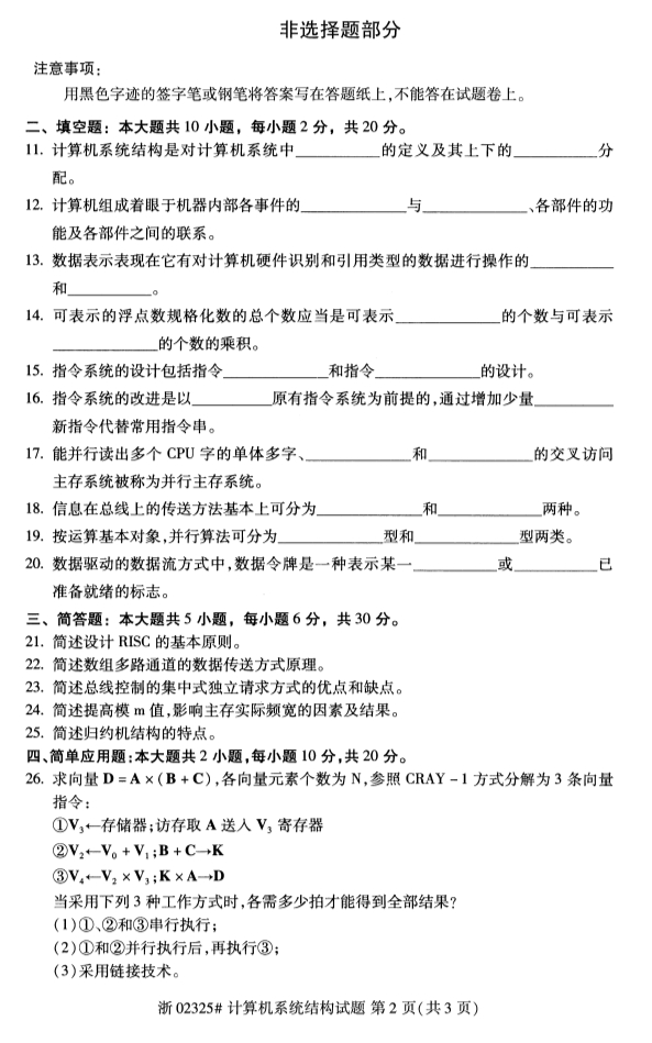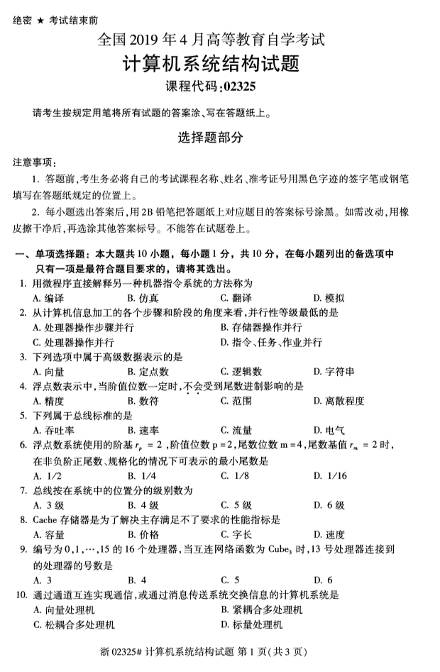 真题下载:全国2019年4月自考02325计算机系统结构真题