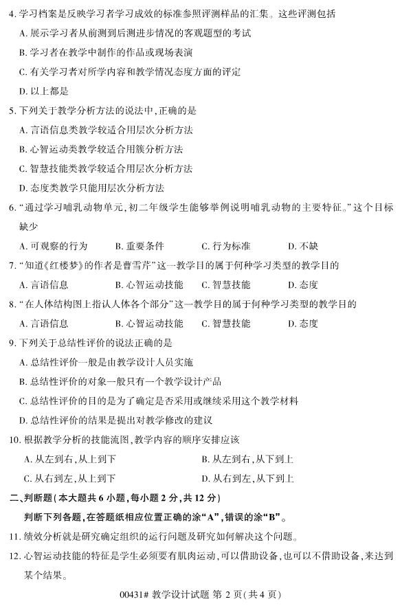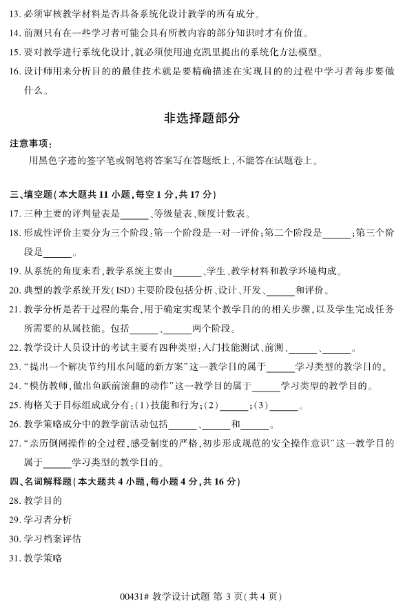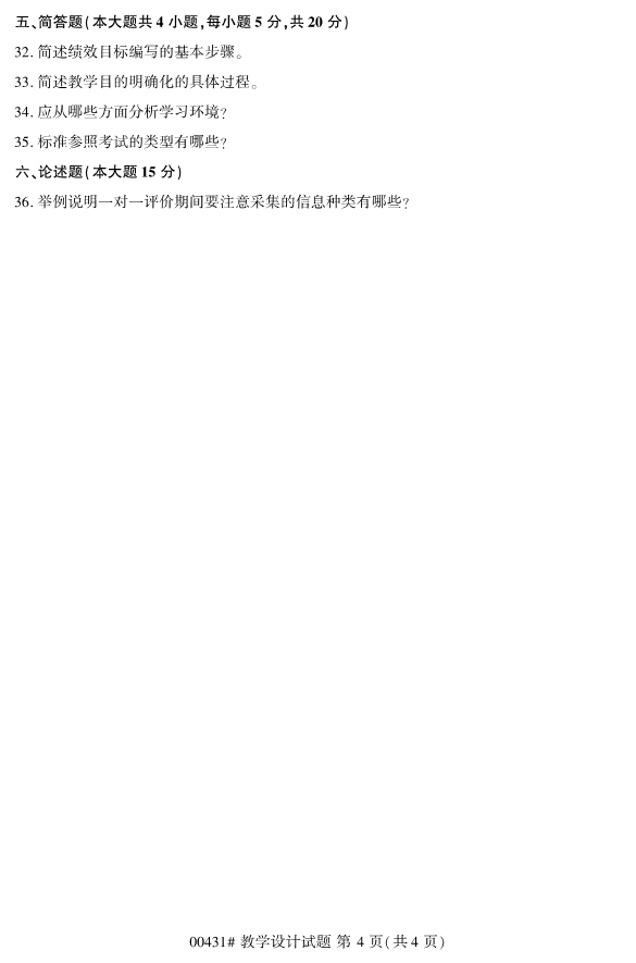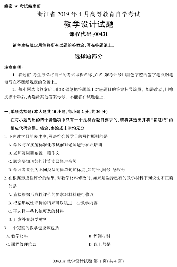 • 所在位置:浙江自考网 > 自考试卷 > 全国2019年4月自考00431教学设计真题