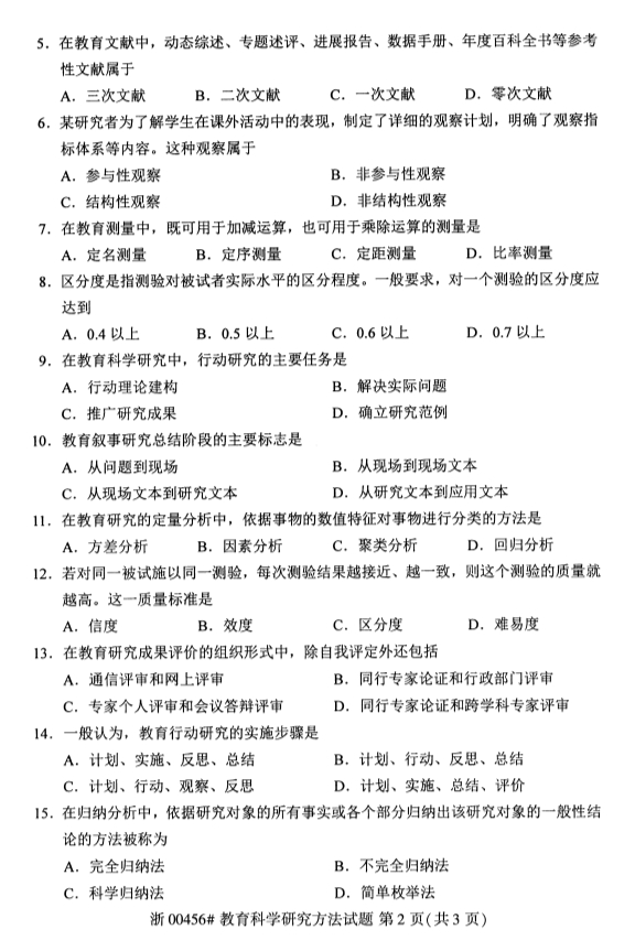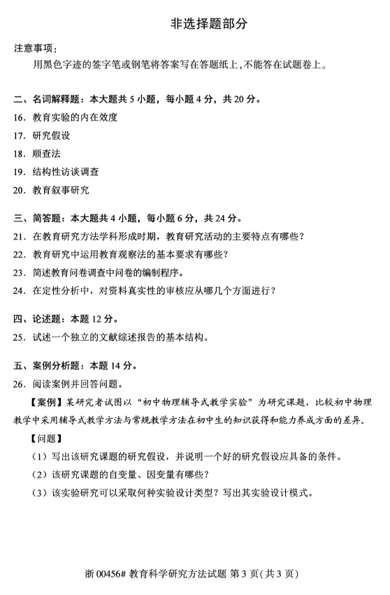 • 所在位置:浙江自考网 > 自考试卷 > 全国2019年4月自考00456教育科学研究方法真题
