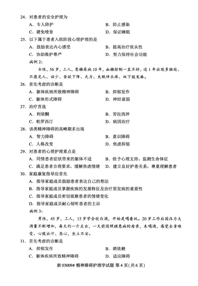 • 所在位置:浙江自考网 > 自考试卷 > 全国2019年4月自考03009精神疾病护理学真题