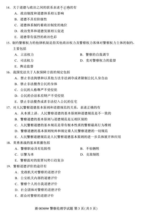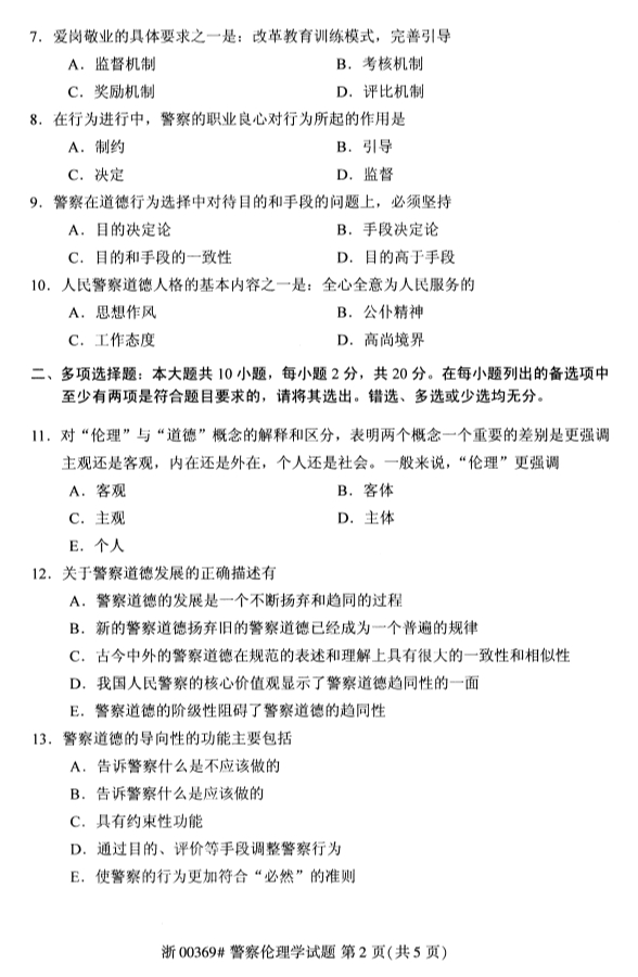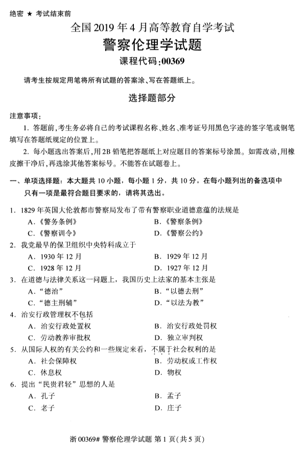 • 所在位置:浙江自考网 > 自考试卷 > 全国2019年4月自考00369警察伦理学真题
