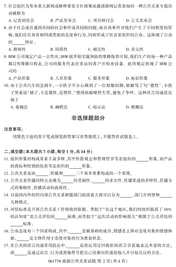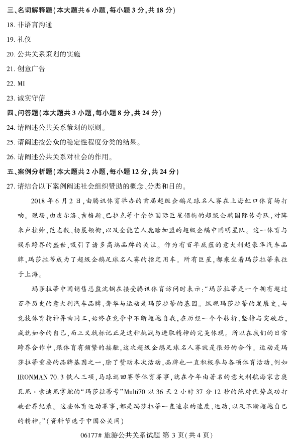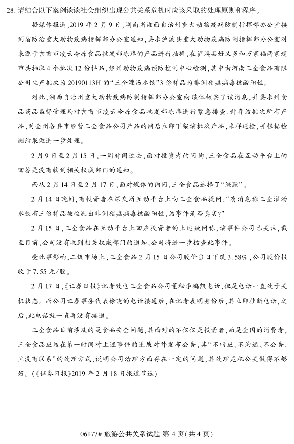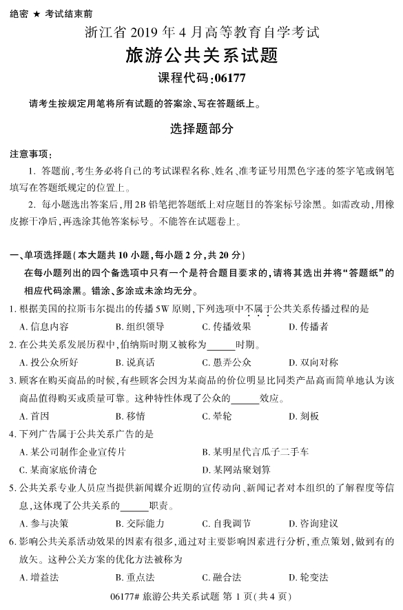 真题下载:浙江省2019年4月自考06177旅游公共关系真题