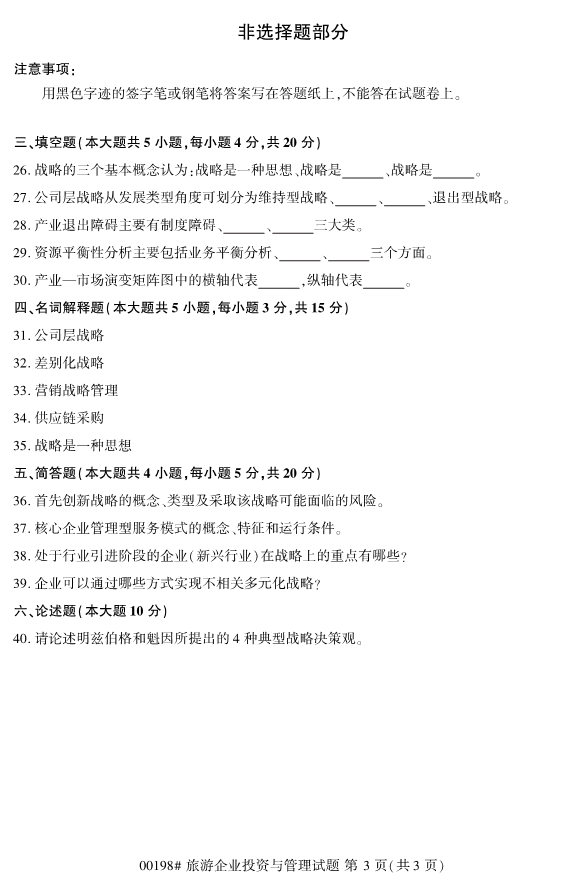 浙江省2019年4月自考00198旅游企业投资与管理真题