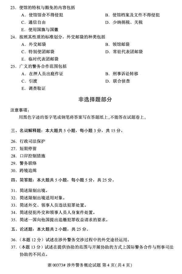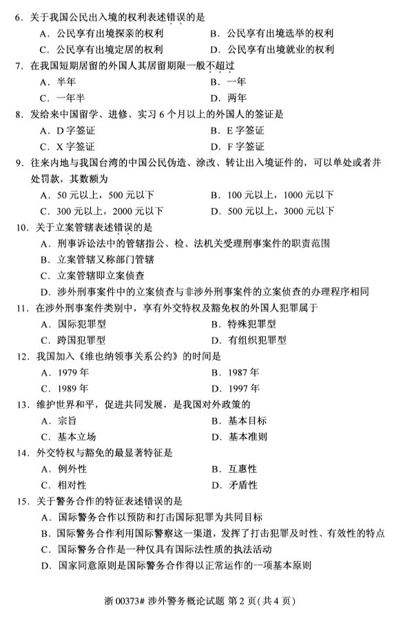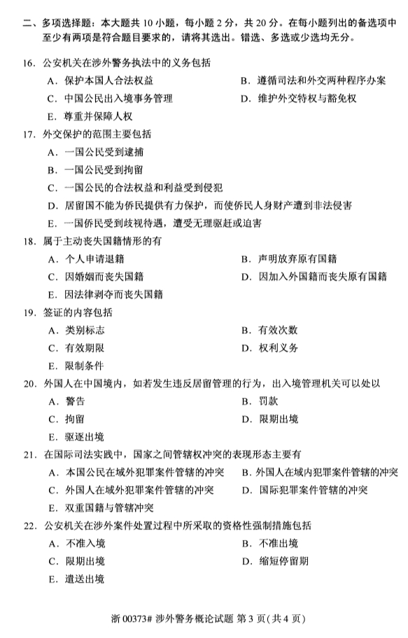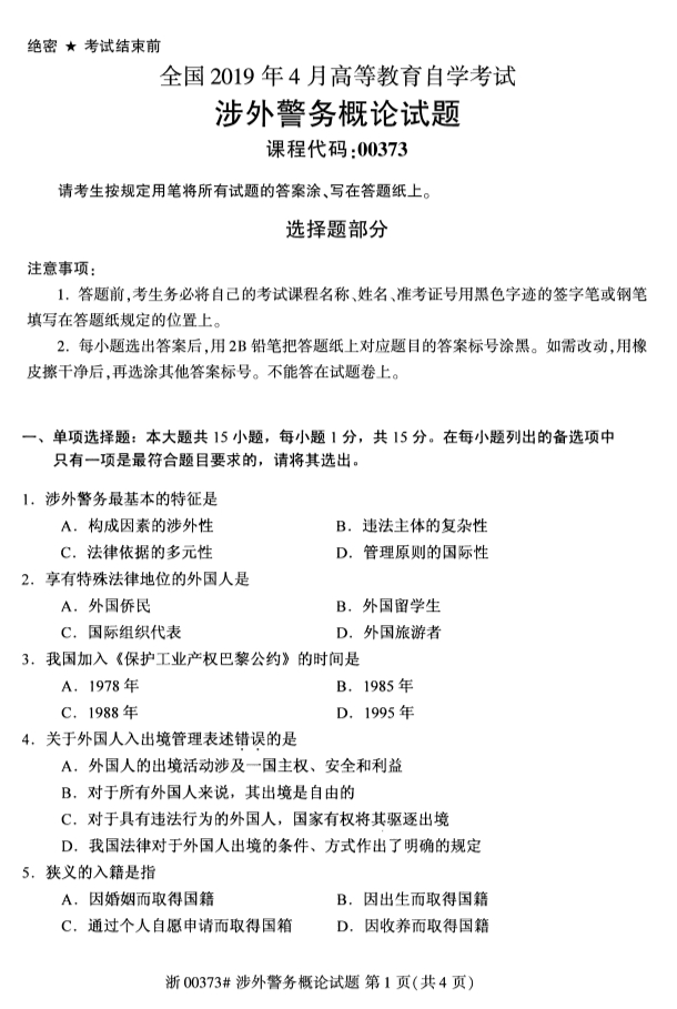 • 所在位置:浙江自考网 > 自考试卷 > 全国2019年4月自考00373涉外警务概论试题