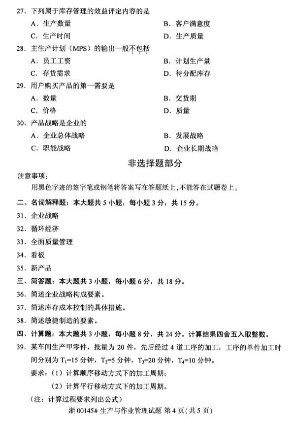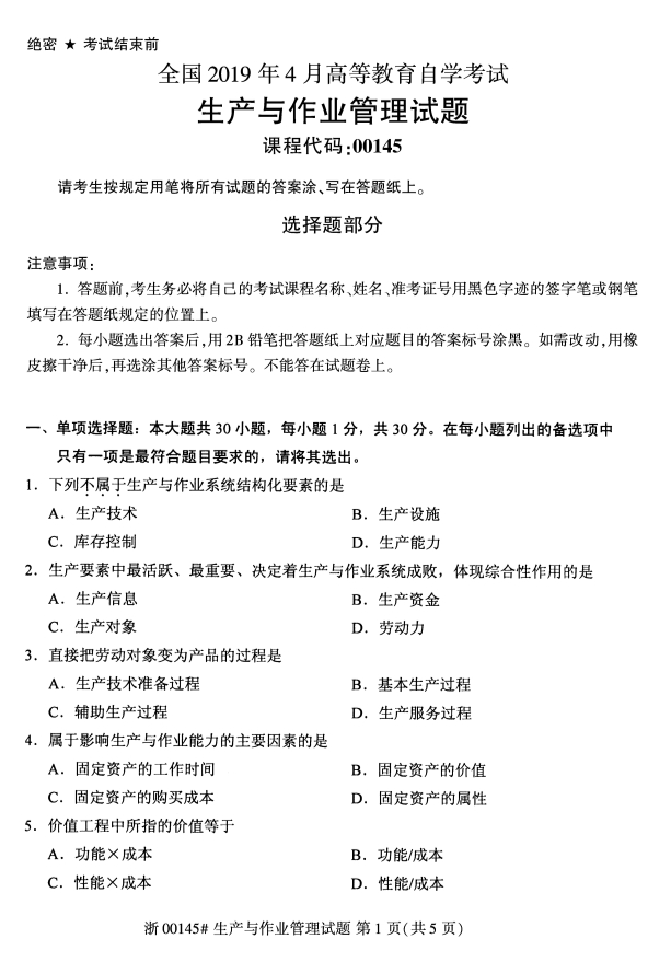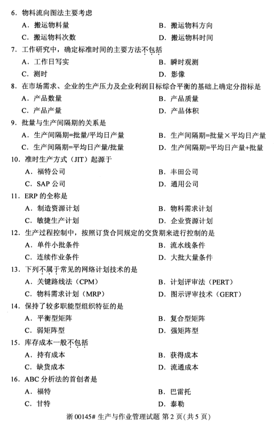 • 所在位置:浙江自考网 > 自考试卷 > 全国2019年4月自考00145生产与作业管理试题