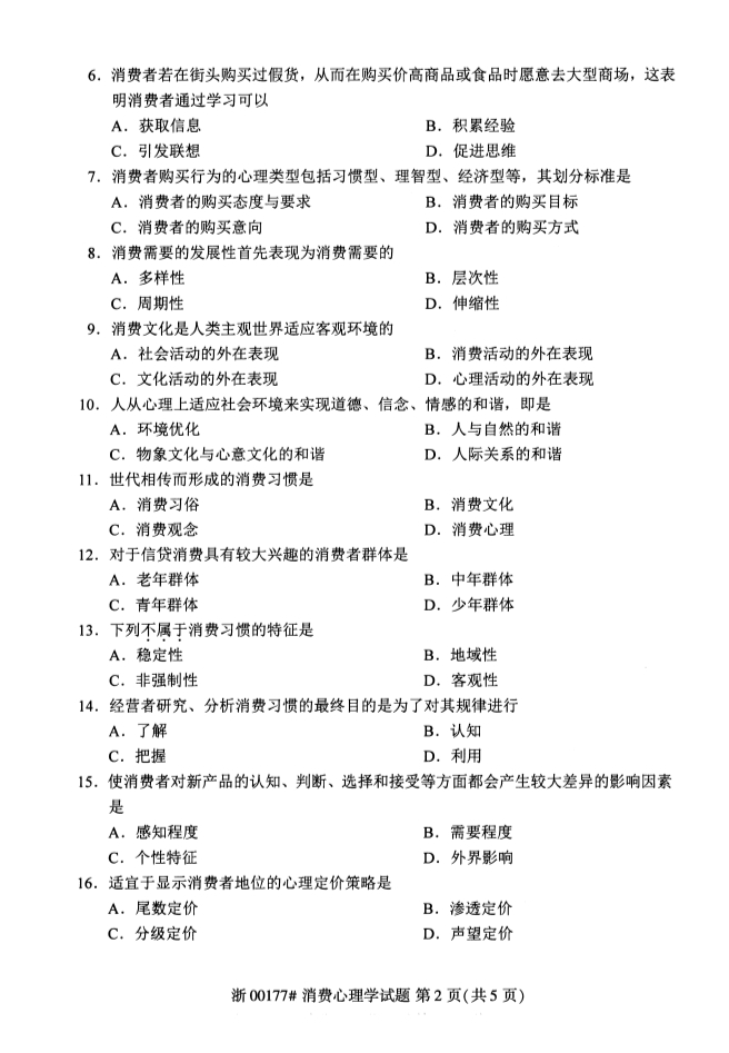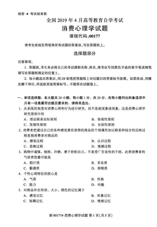 • 所在位置:浙江自考网 > 自考试卷 > 全国2019年4月自考00177消费心理学试题