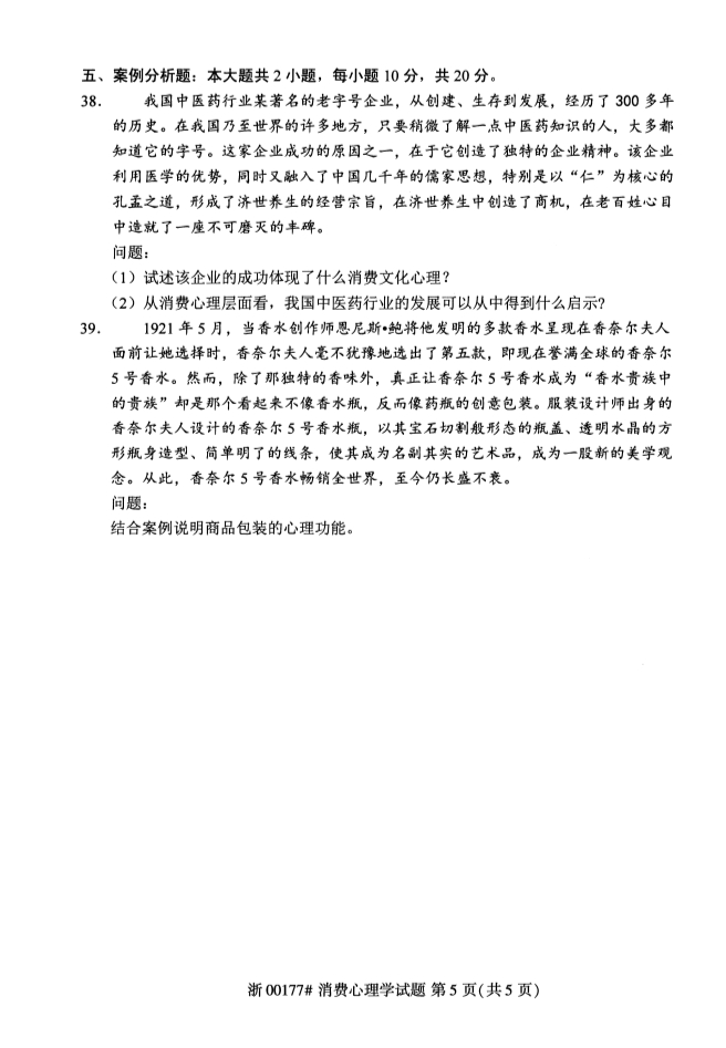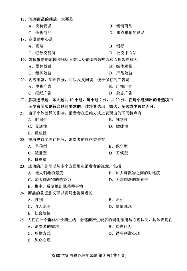 真题下载:全国2019年4月自考00177消费心理学试题