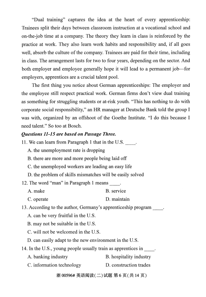 • 所在位置:浙江自考网 > 自考试卷 > 浙江省2019年4月自考00596英语阅读(二)试题