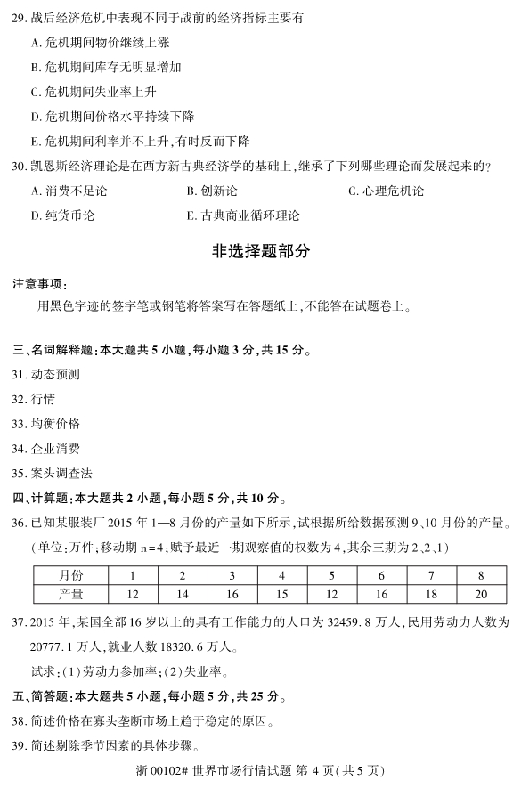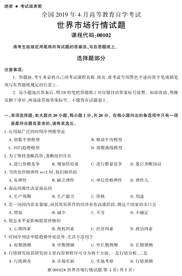 真题下载:全国2019年4月自考00102世界市场行情试题