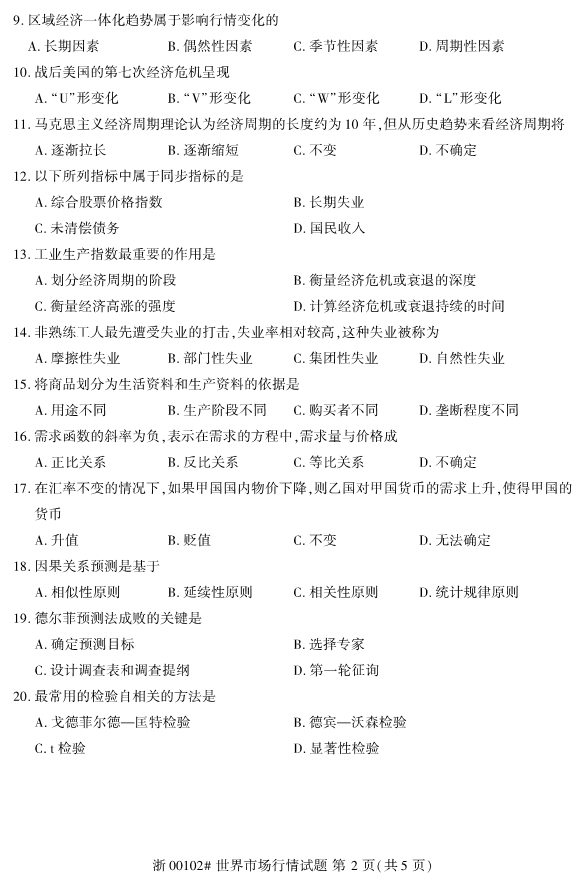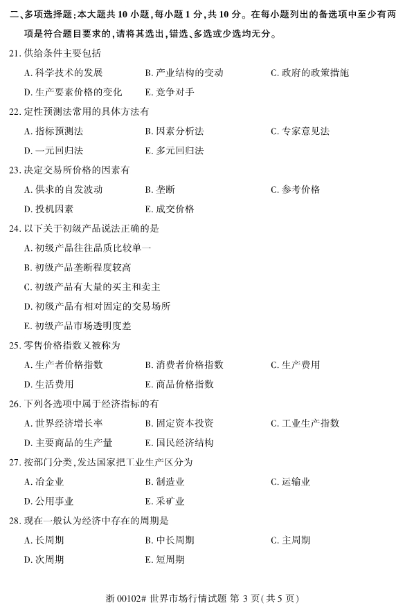 • 所在位置:浙江自考网 > 自考试卷 > 全国2019年4月自考00102世界市场行情试题