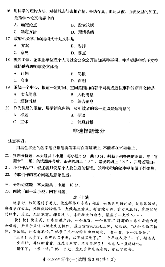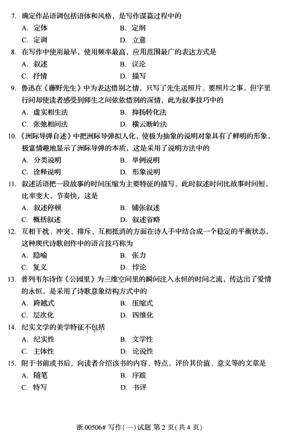 • 所在位置:浙江自考网 > 自考试卷 > 全国2019年4月自考00506写作(一)试题