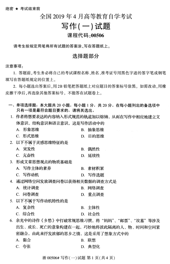 真题下载:全国2019年4月自考00506写作(一)试题.pdf