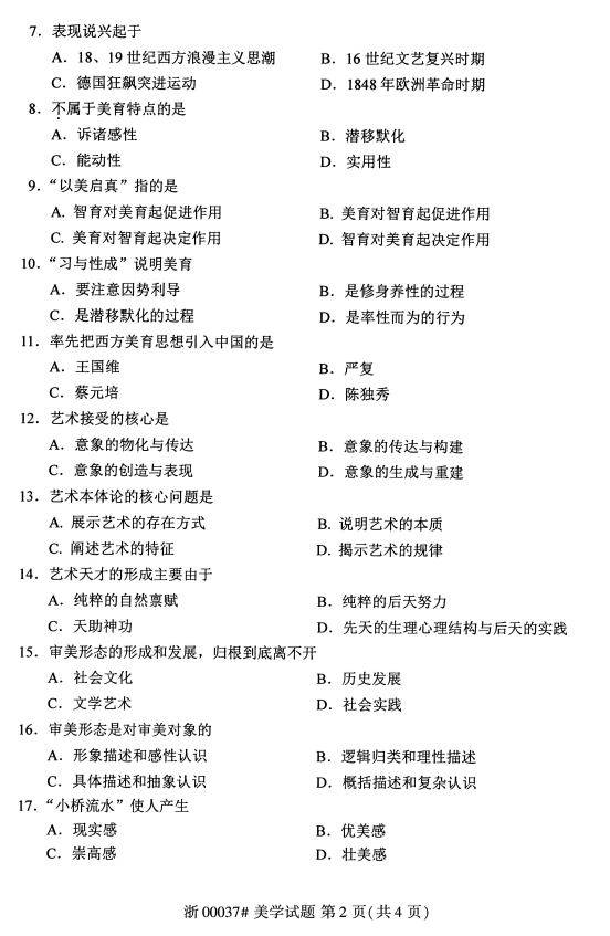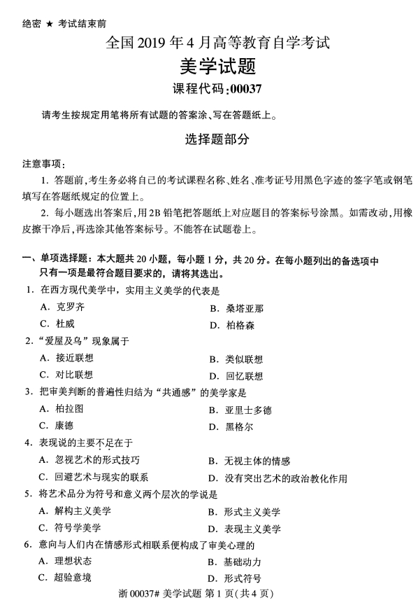 • 所在位置:浙江自考网 > 自考试卷 > 浙江省2019年4月自考00037美术试题