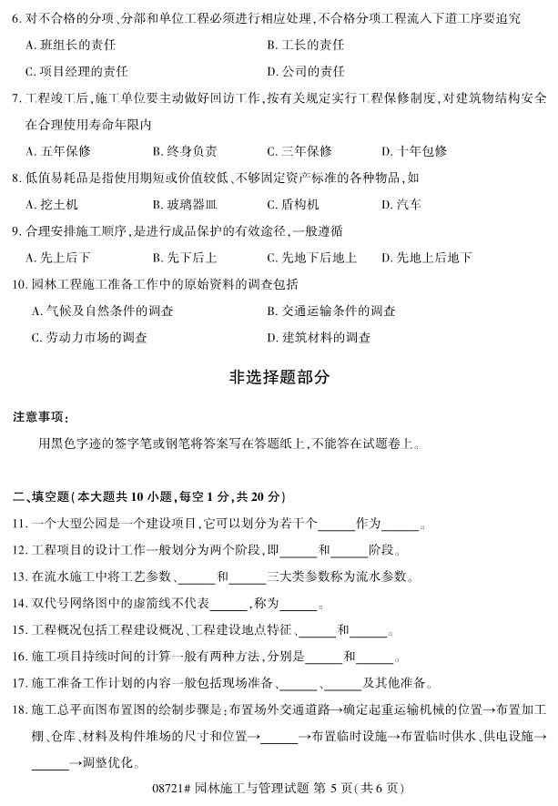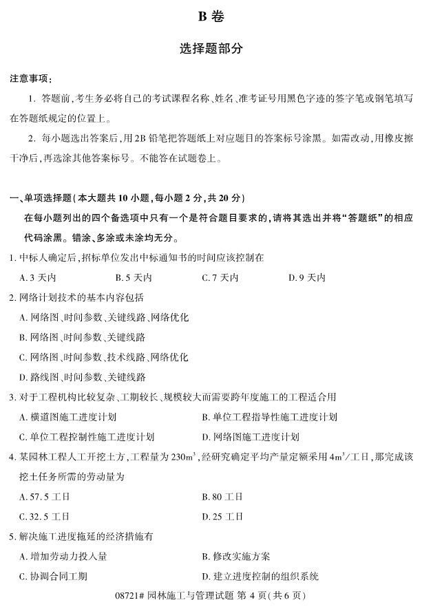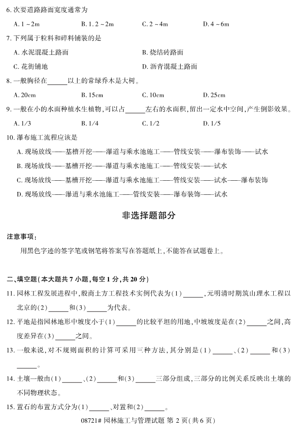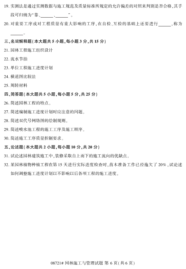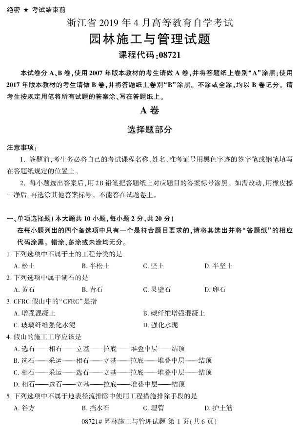 • 所在位置:浙江自考网 > 自考试卷 > 浙江省2019年4月自考08721园林施工管理试题