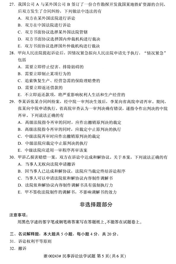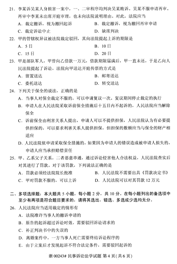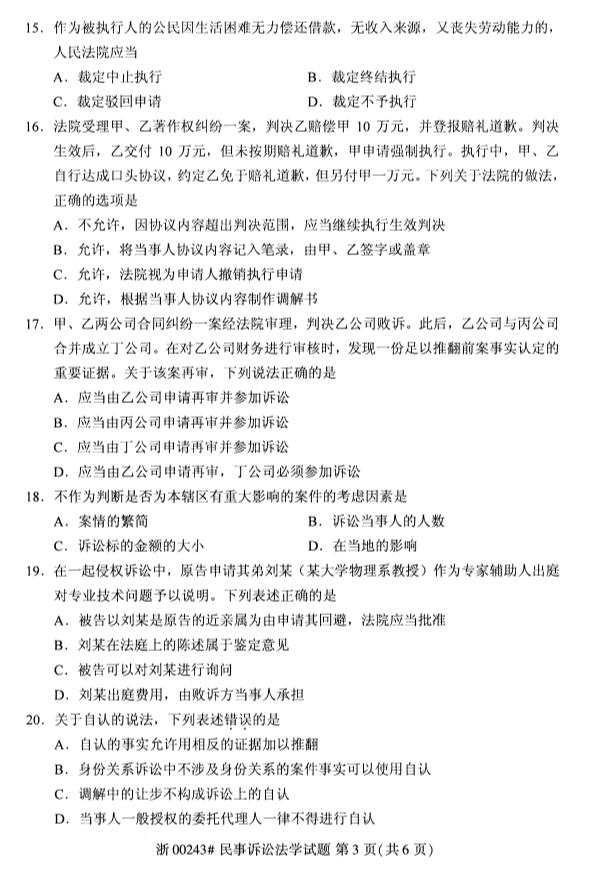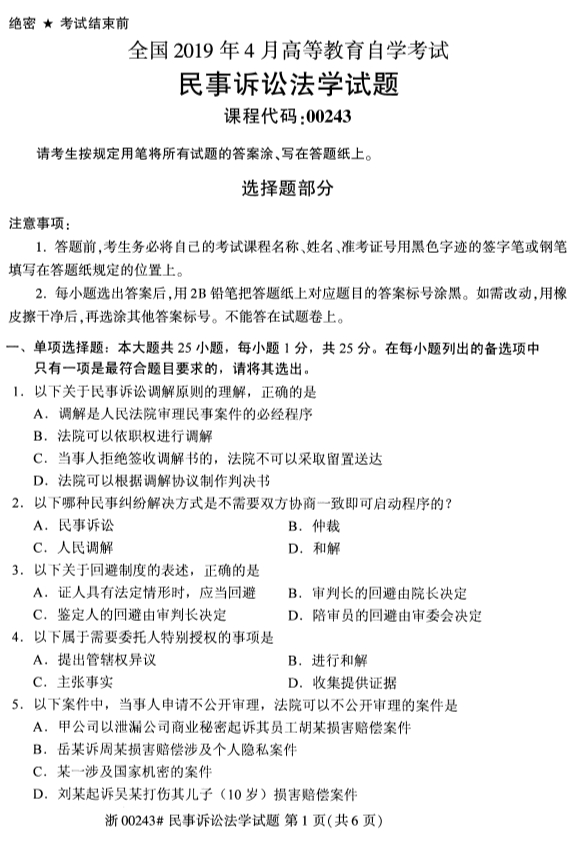 真题下载:全国2019年4月自考00243民事诉讼法学试题
