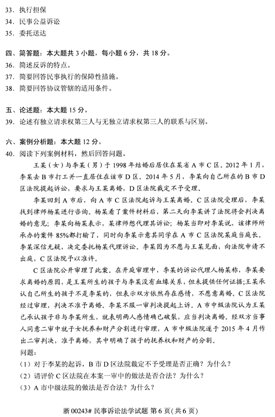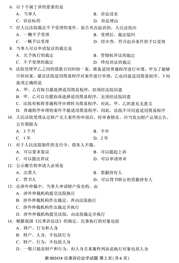 • 所在位置:浙江自考网 > 自考试卷 > 全国2019年4月自考00243民事诉讼法学试题