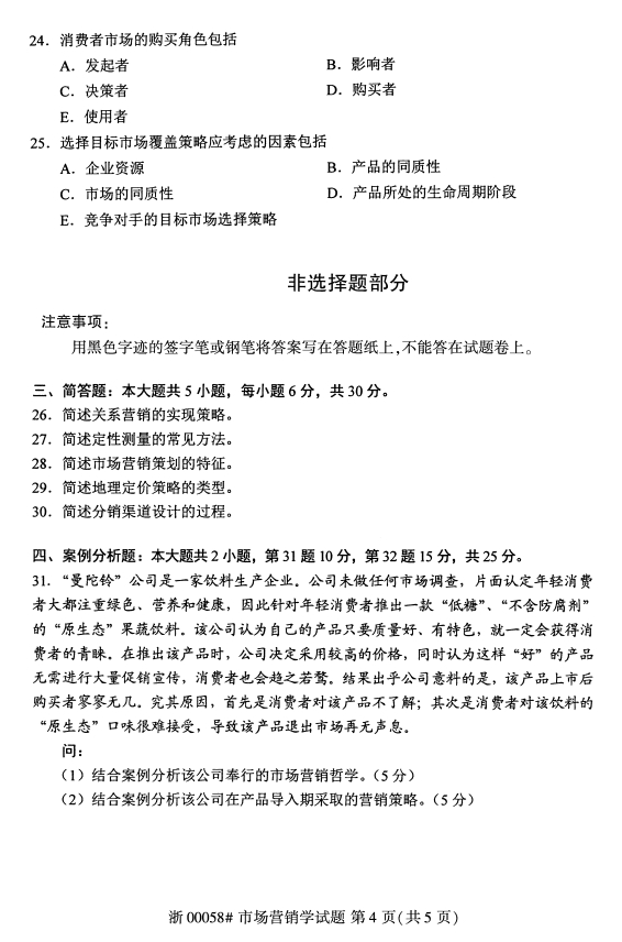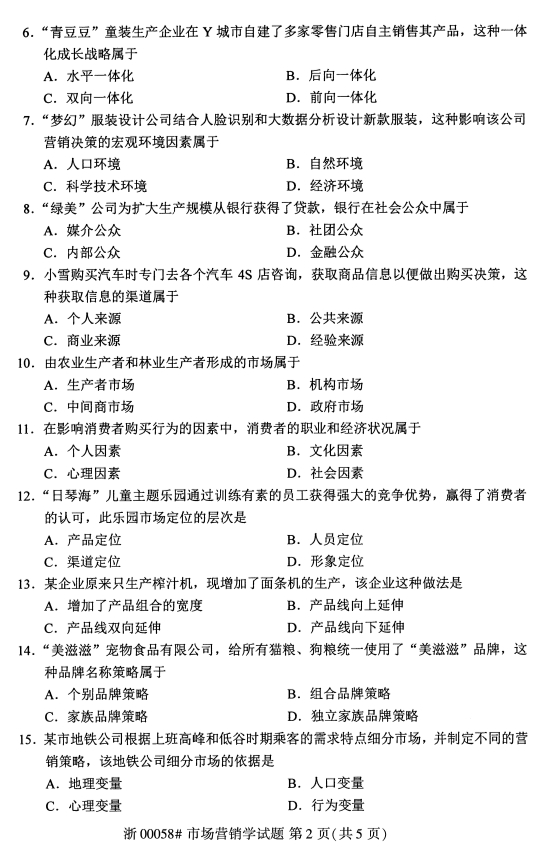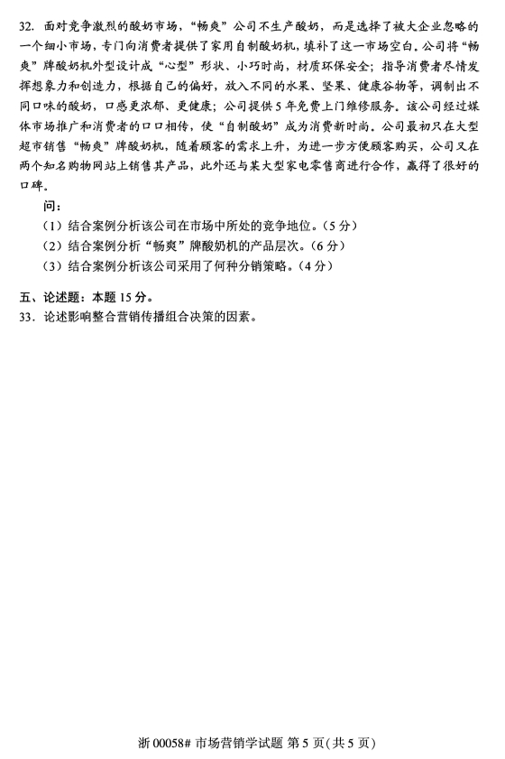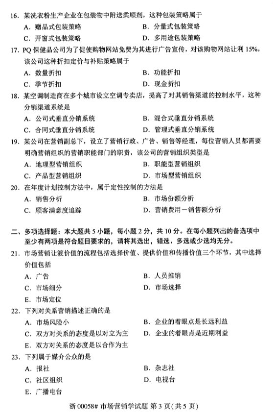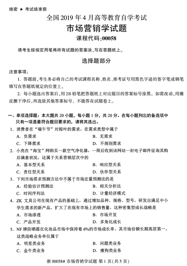 • 所在位置:浙江自考网 > 自考试卷 > 全国2019年4月自考00058市场营销学试题