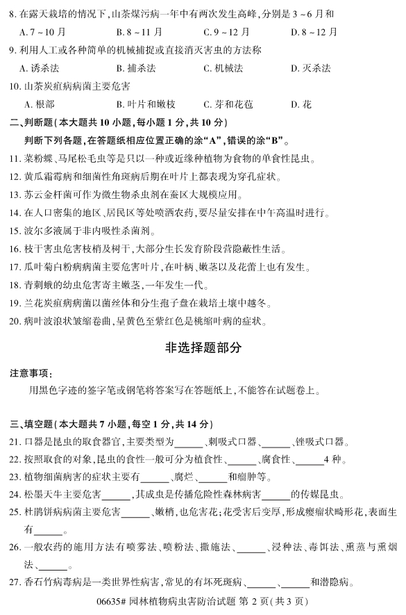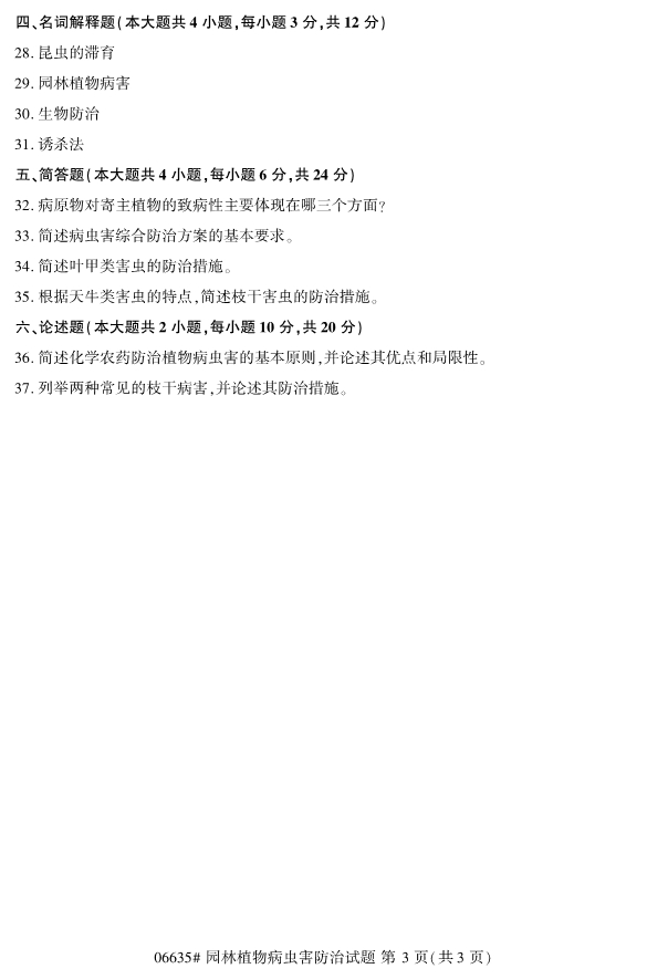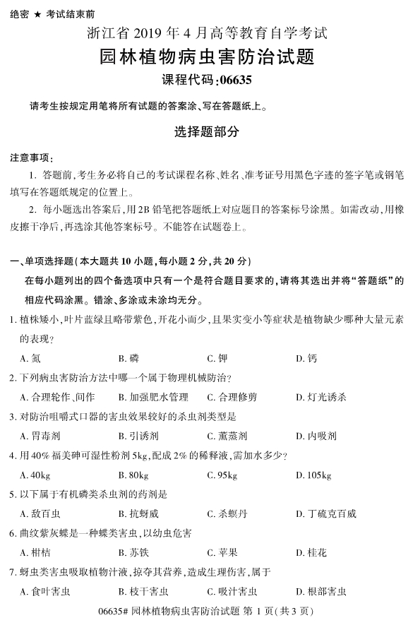 浙江省2019年4月自考06635园林植物虫害防治试题
