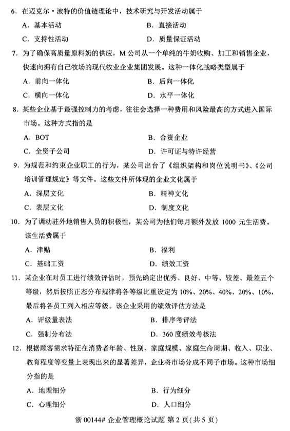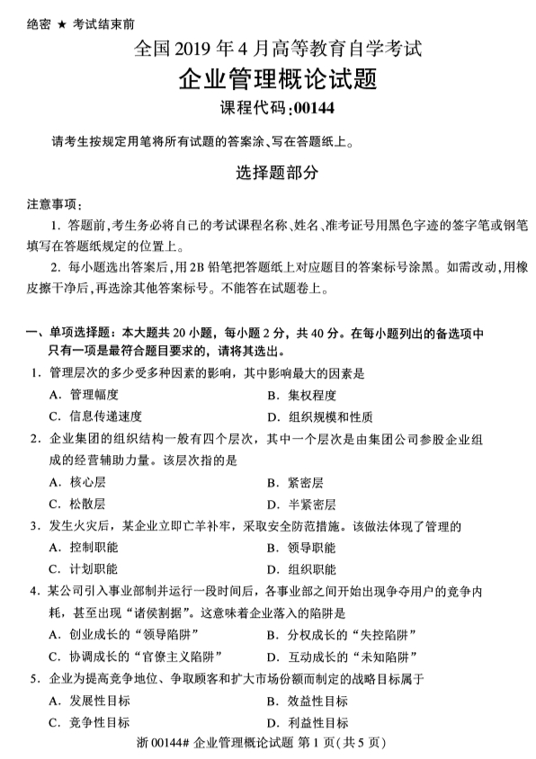 • 所在位置:浙江自考网 > 自考试卷 > 浙江省2019年4月自考00144企业管理概论试题