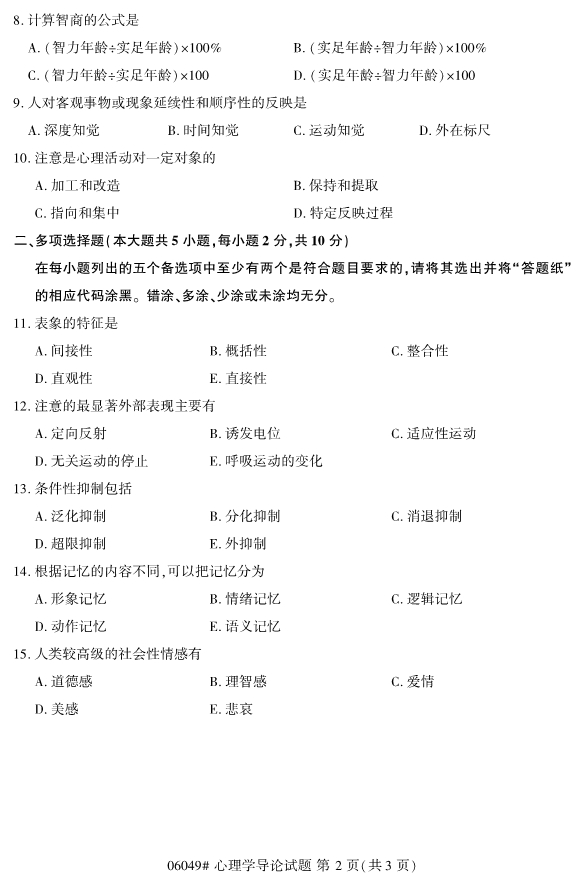 真题下载:全国2019年4月自考06049心理学导论试题.pdf