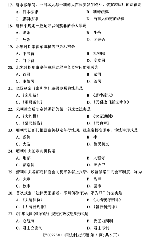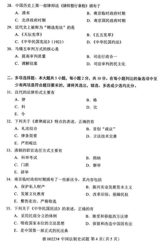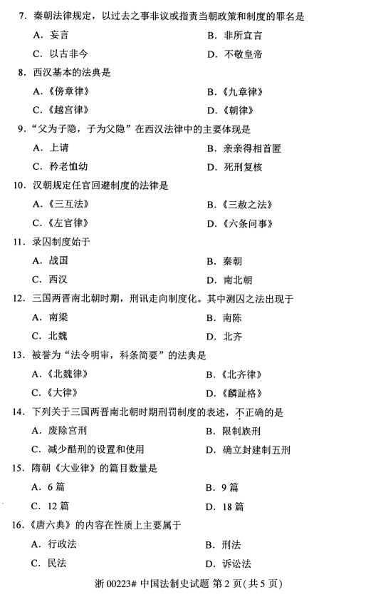 • 所在位置:浙江自考网 > 自考试卷 > 浙江省2019年4月自考00223中国法制史试题