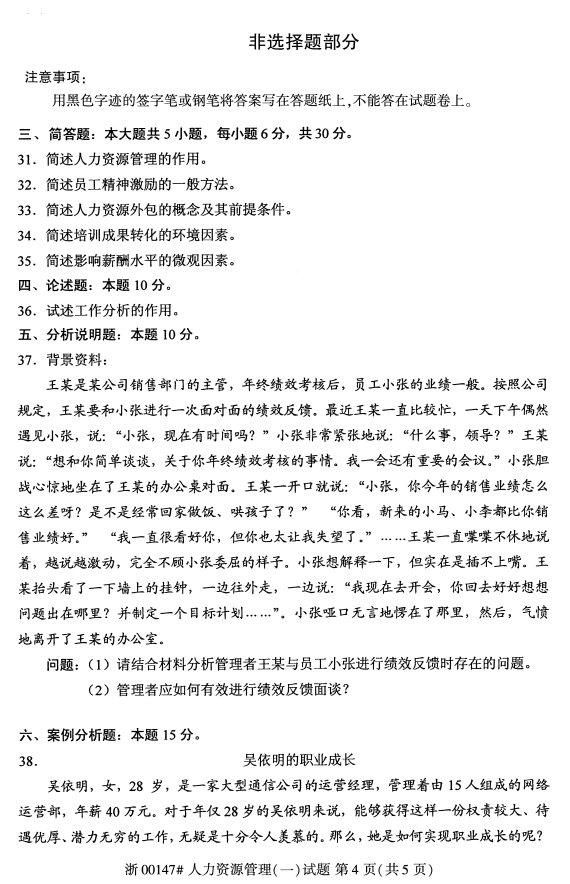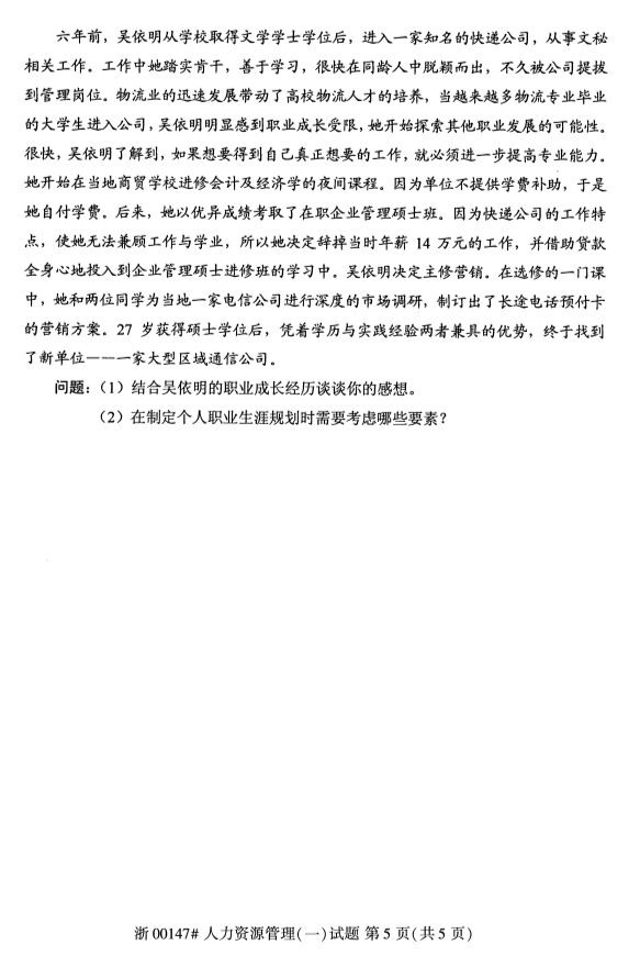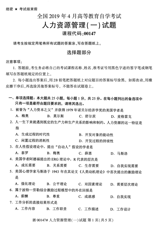 真题下载:全国2019年4月自考00147人力资源管理(一)试题