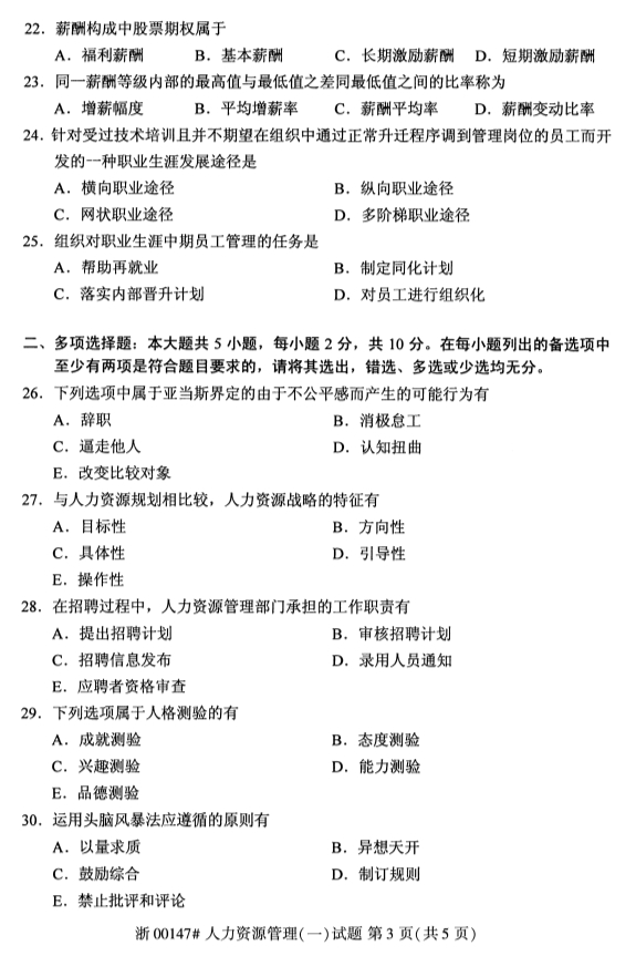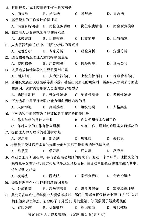 • 所在位置:浙江自考网 > 自考试卷 > 全国2019年4月自考00147人力资源管理(一)试题