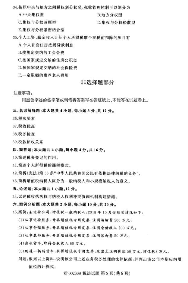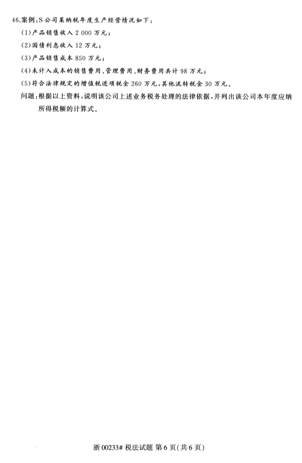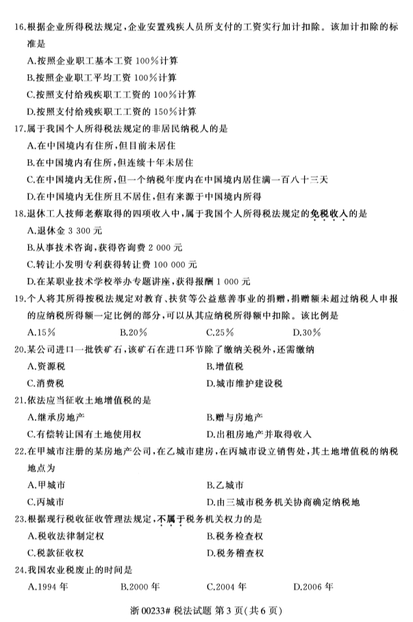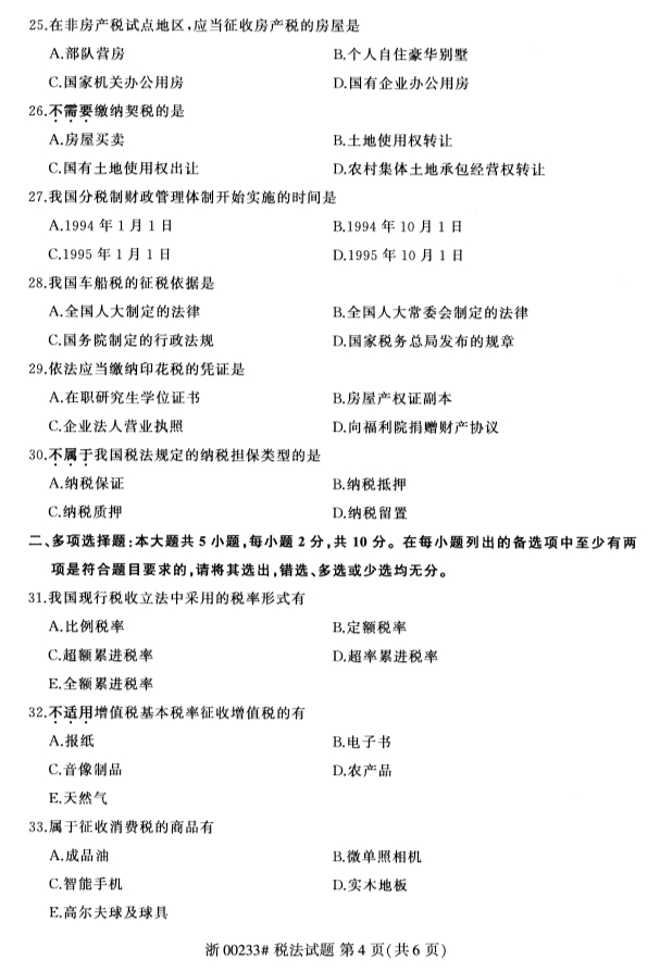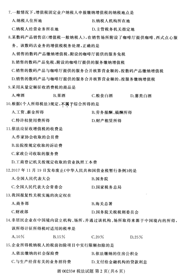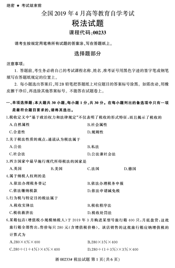• 所在位置:浙江自考网 > 自考试卷 > 全国2019年4月自考00233税法试题