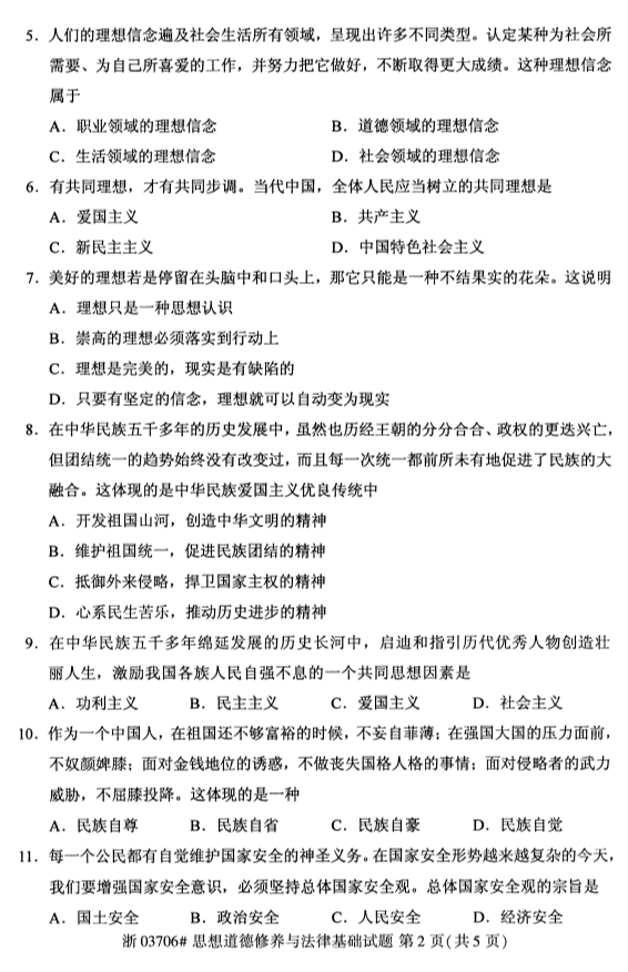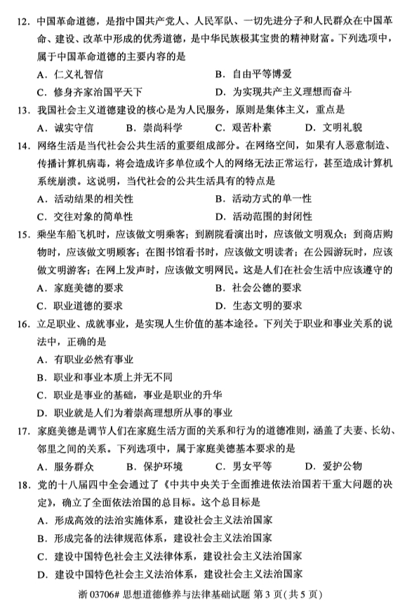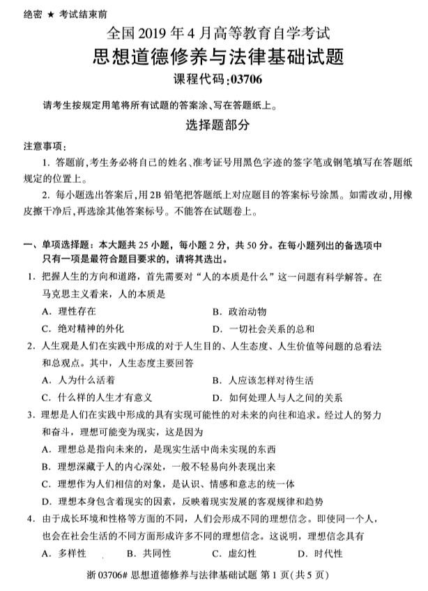 • 所在位置:浙江自考网 > 自考试卷 > 全国2019年4月自考03706思想道德修养试题