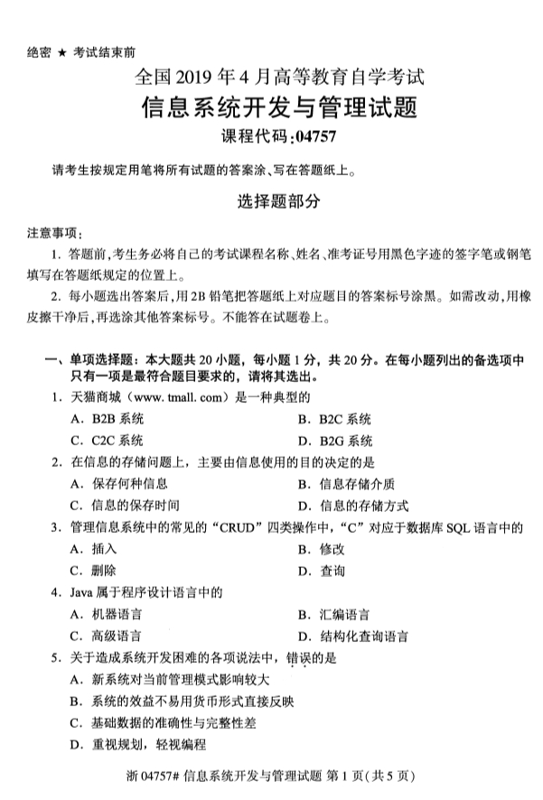 - 2024年10月浙江自考00107现代管理学试题 12-30