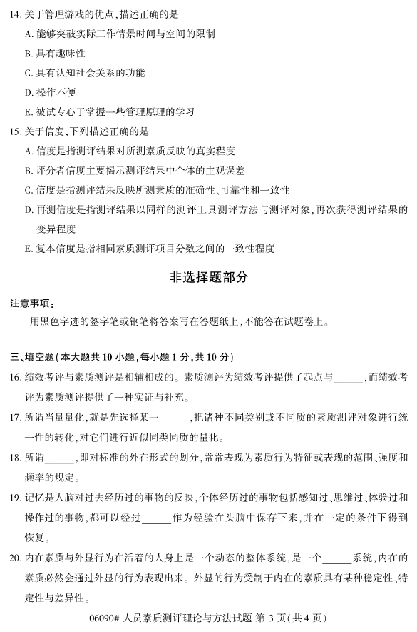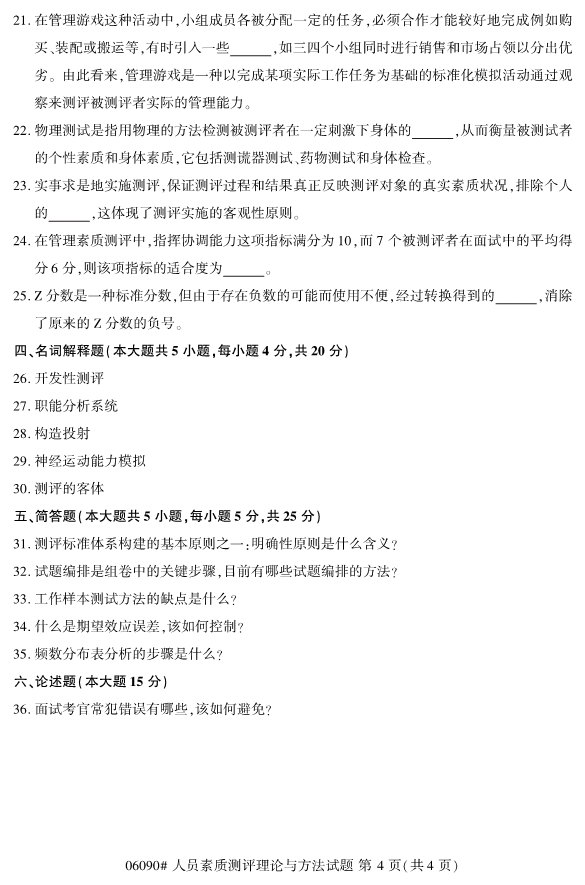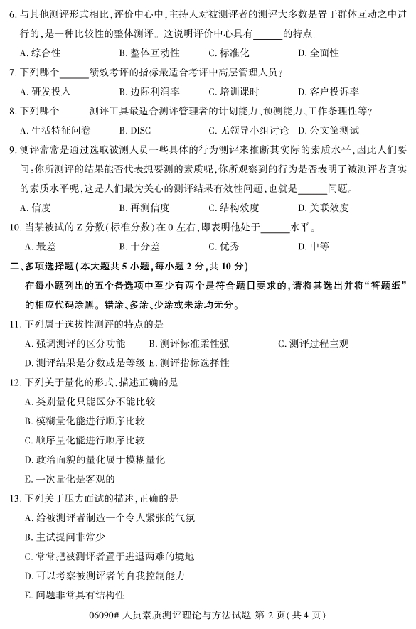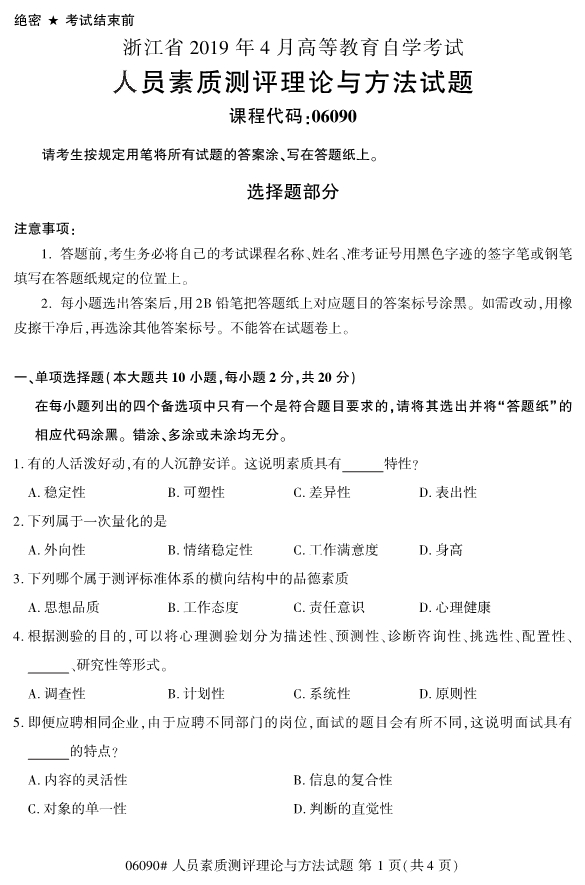 浙江省2019年4月自考06090人员素质测评理论与方法试题
