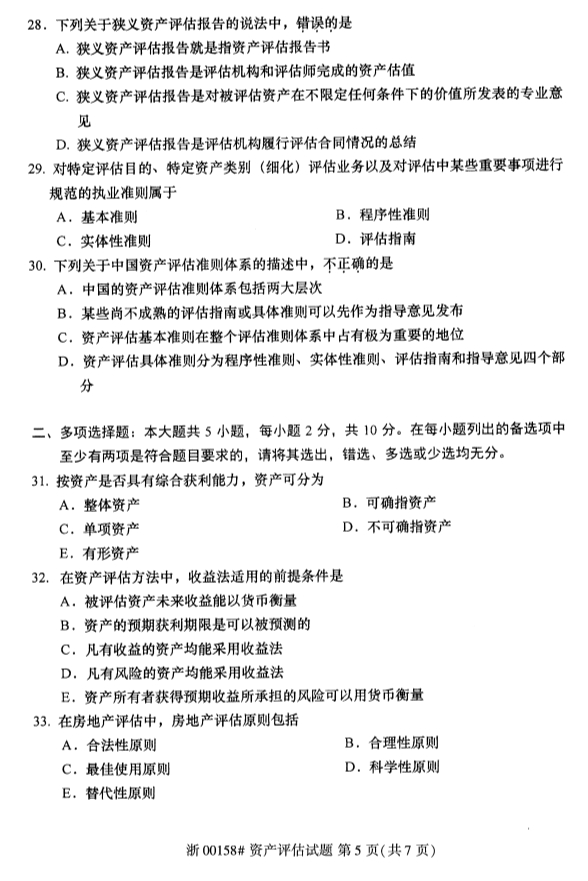 • 所在位置:浙江自考网 > 自考试卷 > 浙江省2019年4月自考00158资产评估试题