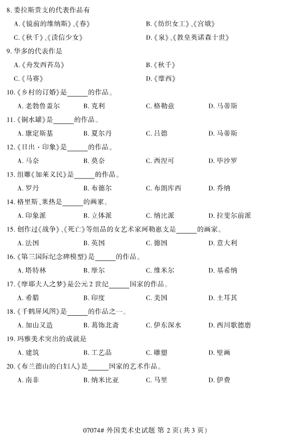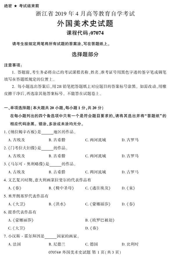 • 所在位置:浙江自考网 > 自考试卷 > 全国2019年4月自考07074外国美术史试题