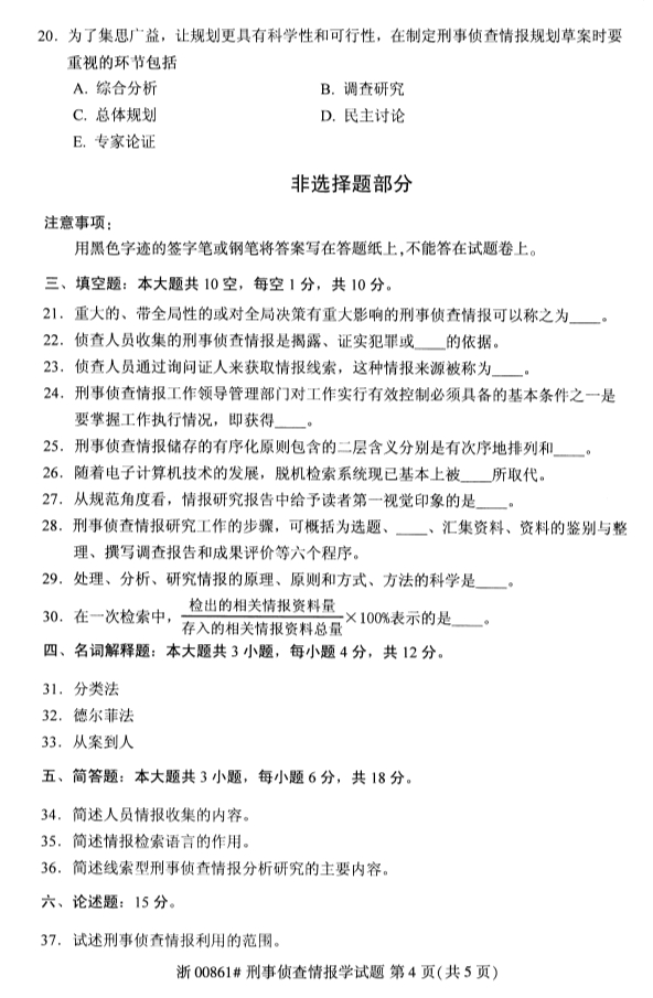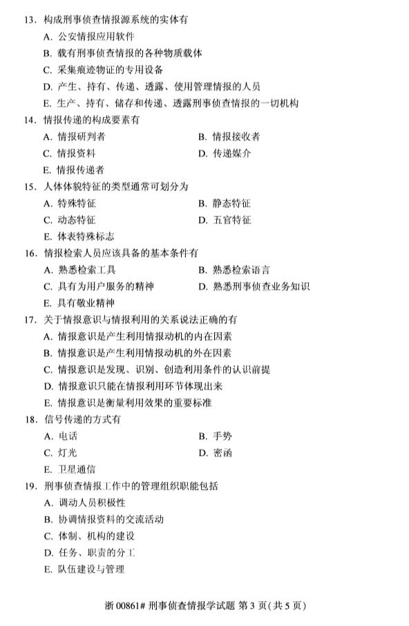 • 所在位置:浙江自考网 > 自考试卷 > 全国2019年4月自考00861刑事侦查情报学概论试题