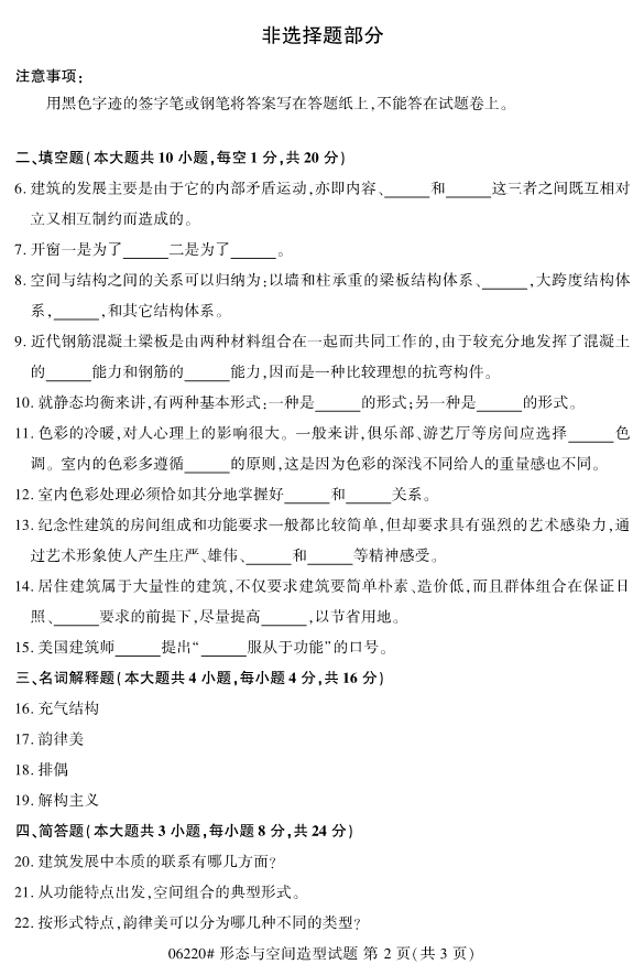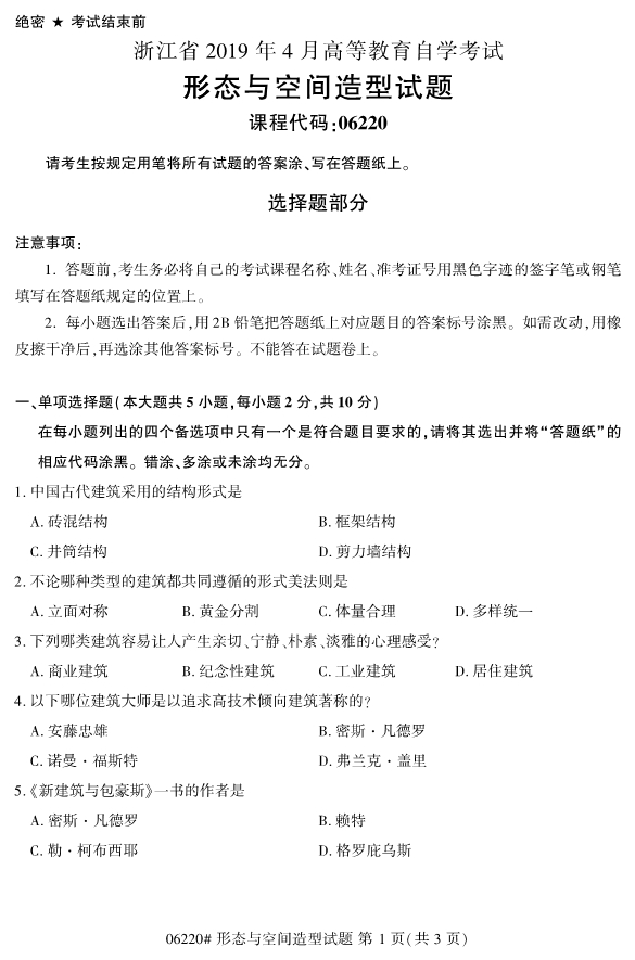 全国2019年4月自考06220行态与空间造型试题