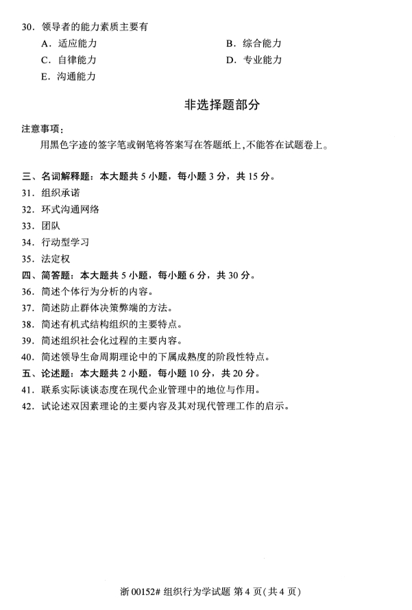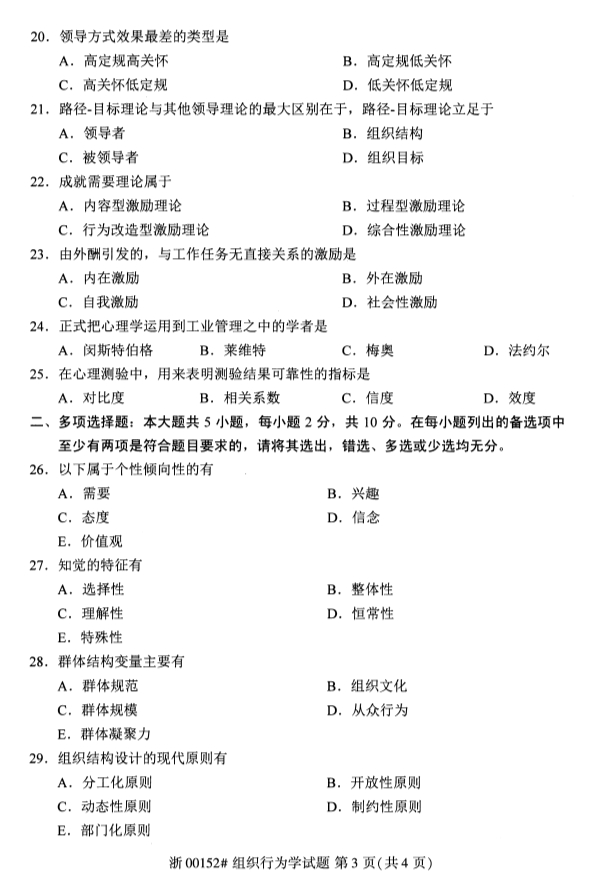 • 所在位置:浙江自考网 > 自考试卷 > 浙江省2019年4月自考00152组织行为试题