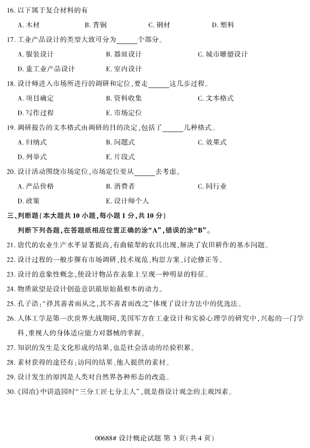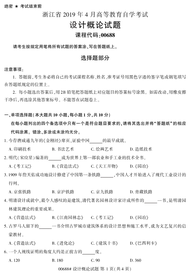 真题下载:浙江省2019年4月自考00688设计概论试题