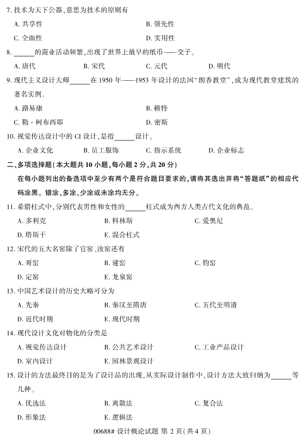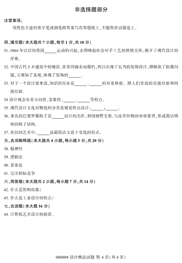 • 所在位置:浙江自考网 > 自考试卷 > 浙江省2019年4月自考00688设计概论试题