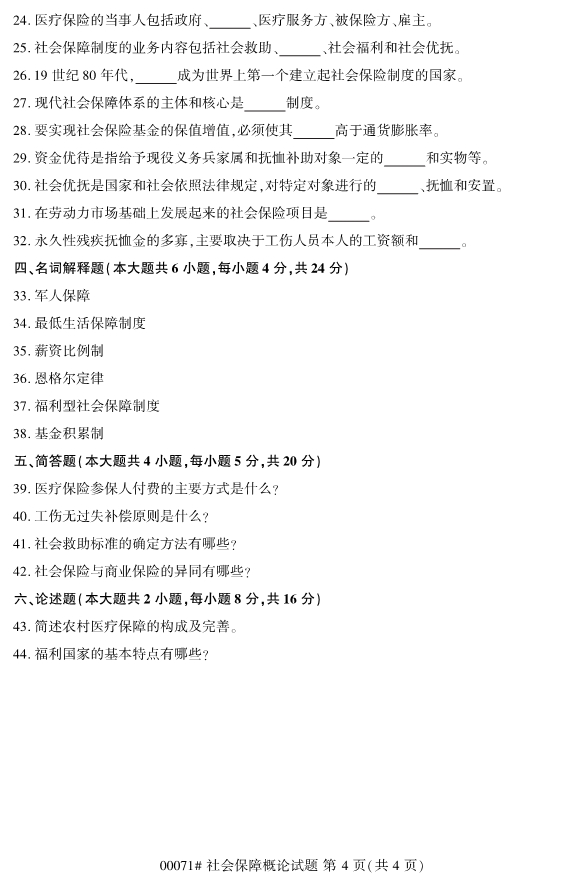 真题下载:浙江省2019年4月自考00071社会保障概论试题