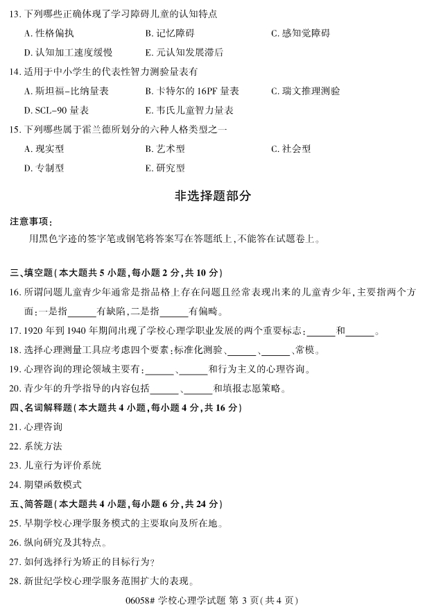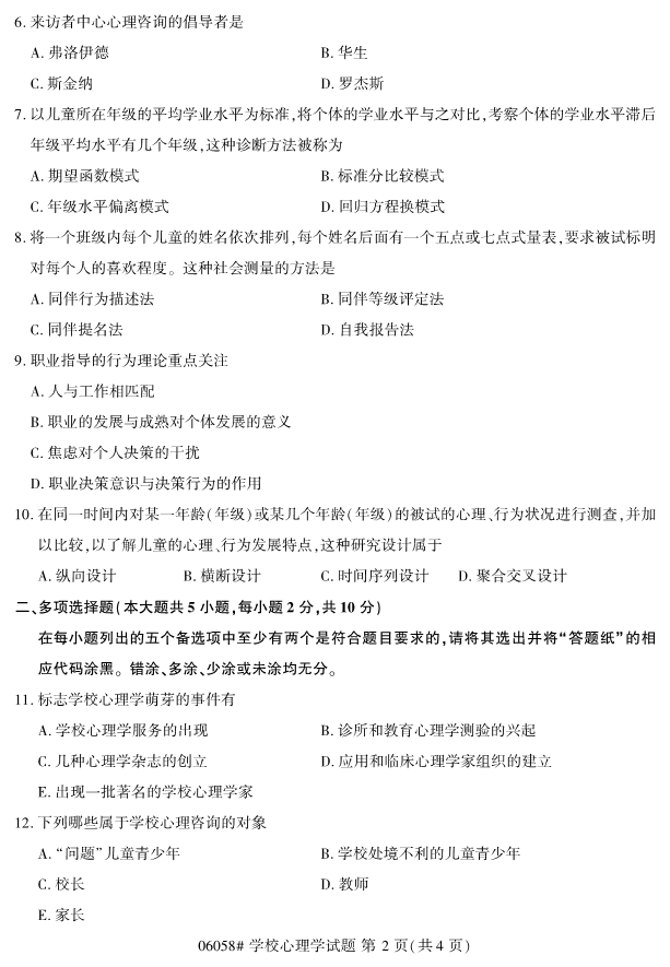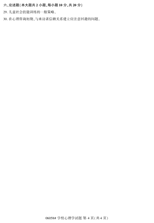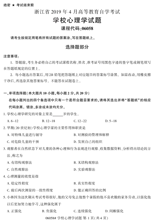 全国2019年4月自考06058学校心理学试题