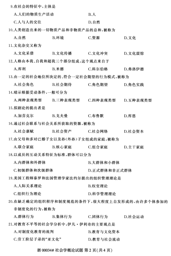 • 所在位置:浙江自考网 > 自考试卷 > 浙江省2019年4月自考00034社会学概论试题
