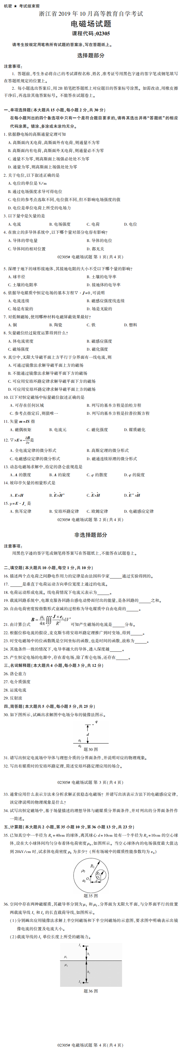 • 所在位置:浙江自考网 > 自考试卷 > 全国2019年10月自考02305电磁场试题
