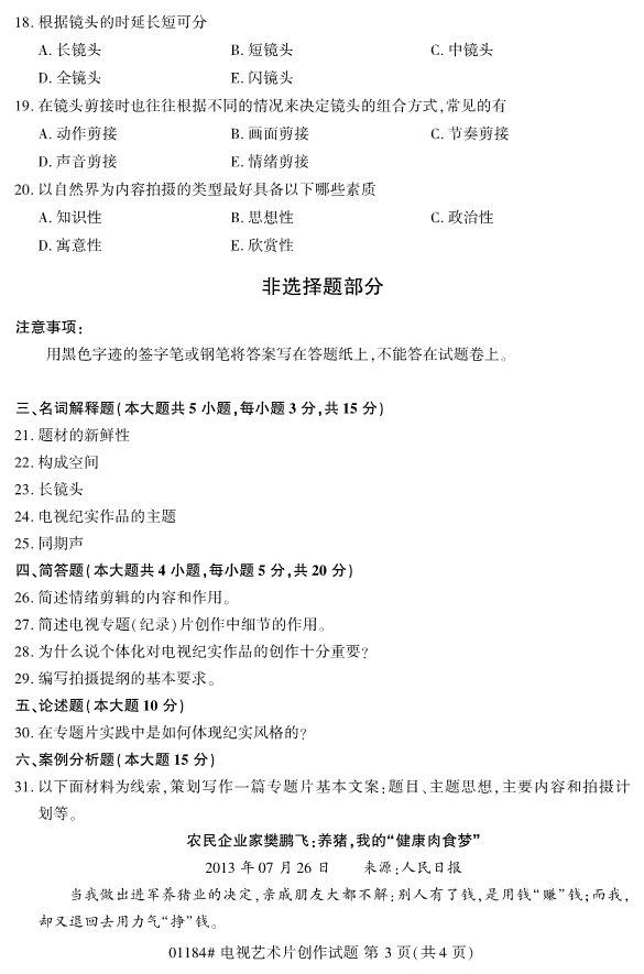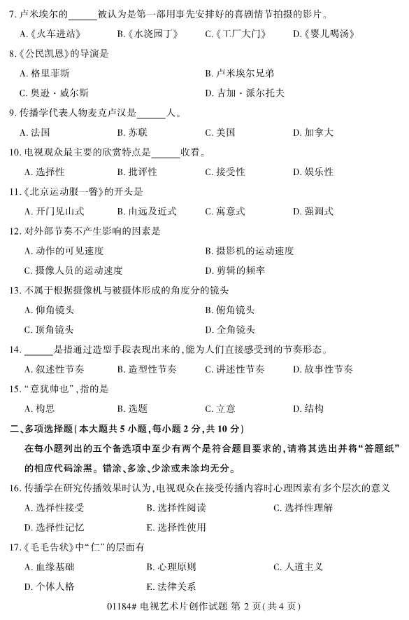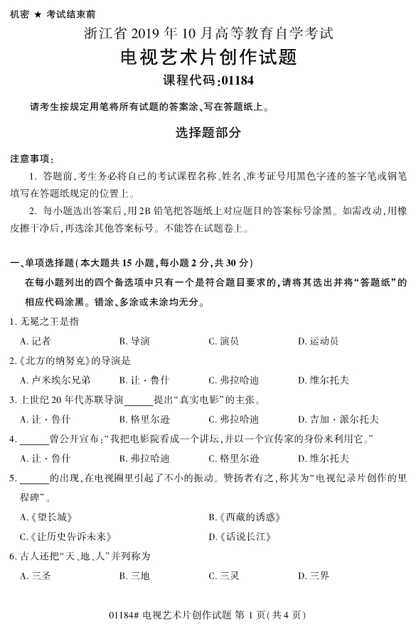 • 所在位置:浙江自考网 > 自考试卷 > 全国2019年10月自考01184电视艺术片创作试题