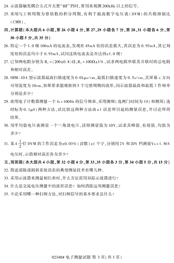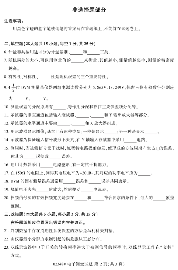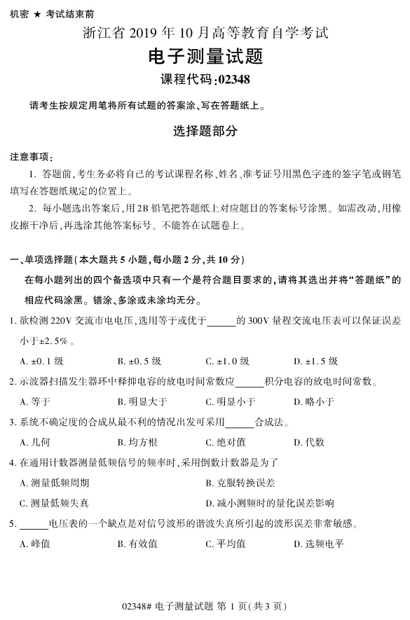 全国2019年10月自考02348电子测量试题
