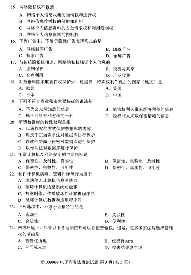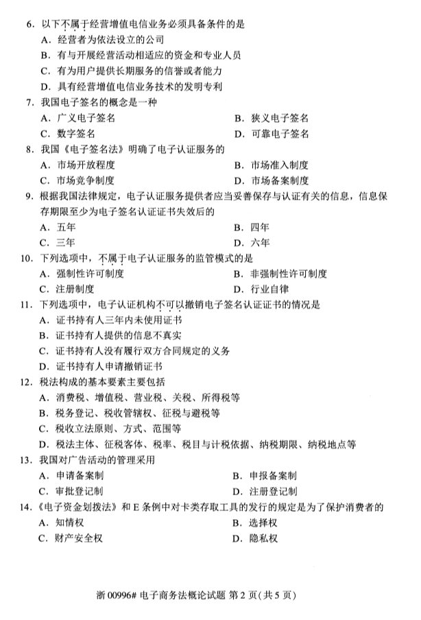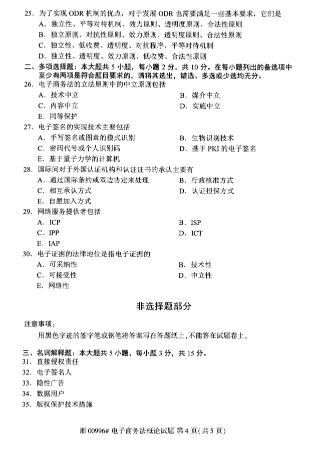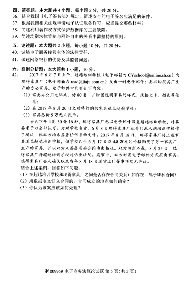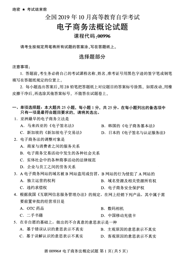 全国2019年10月自考00996电子商务法概论试题
