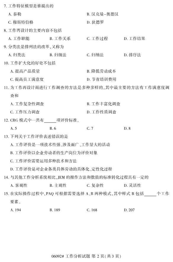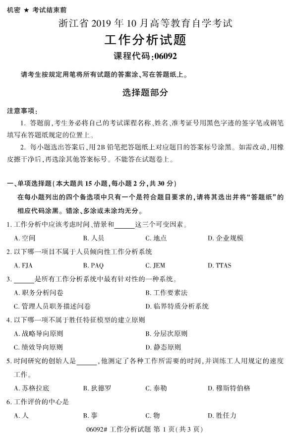 • 所在位置:浙江自考网 > 自考试卷 > 全国2019年10月自考06092工作分析试题