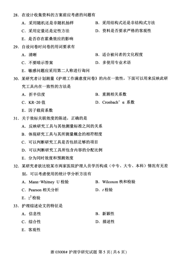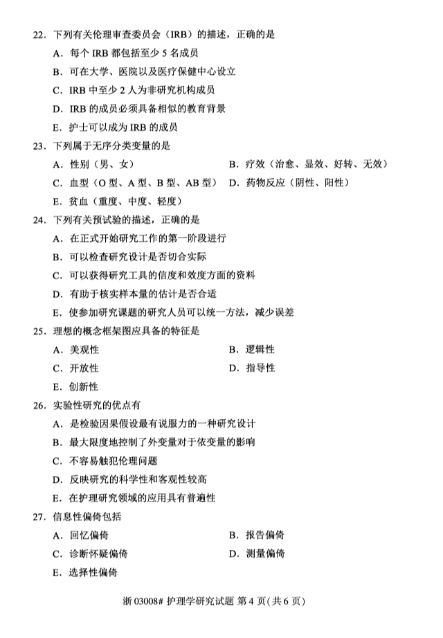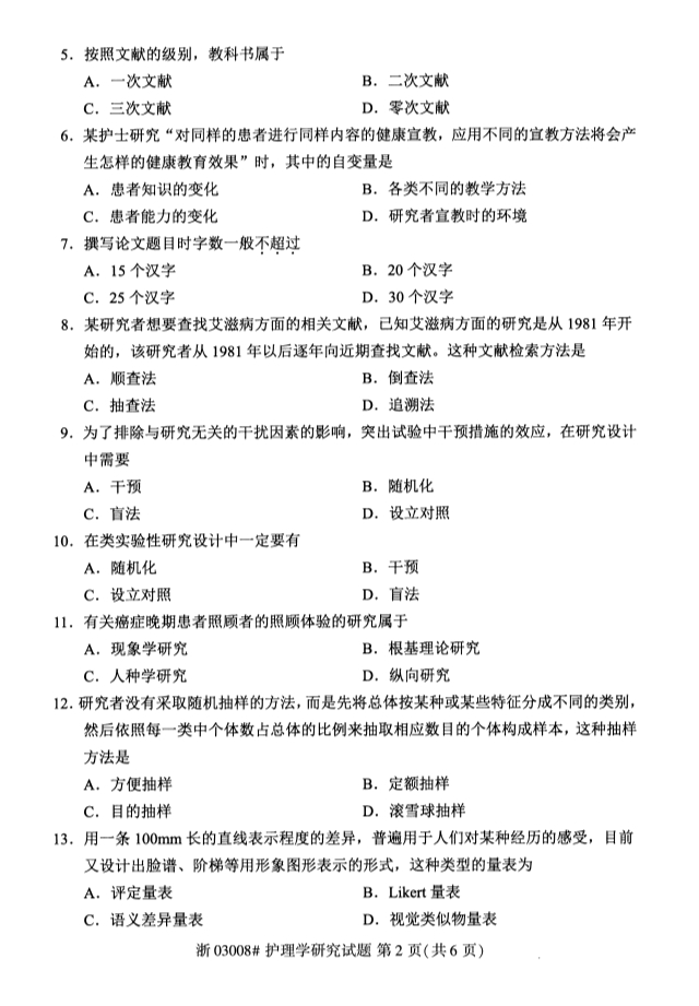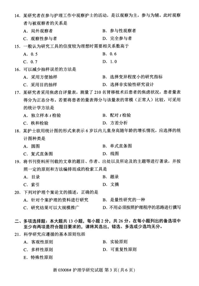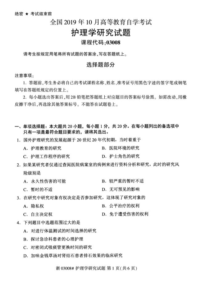 • 所在位置:浙江自考网 > 自考试卷 > 全国2019年10月自考03008护理学研究试题