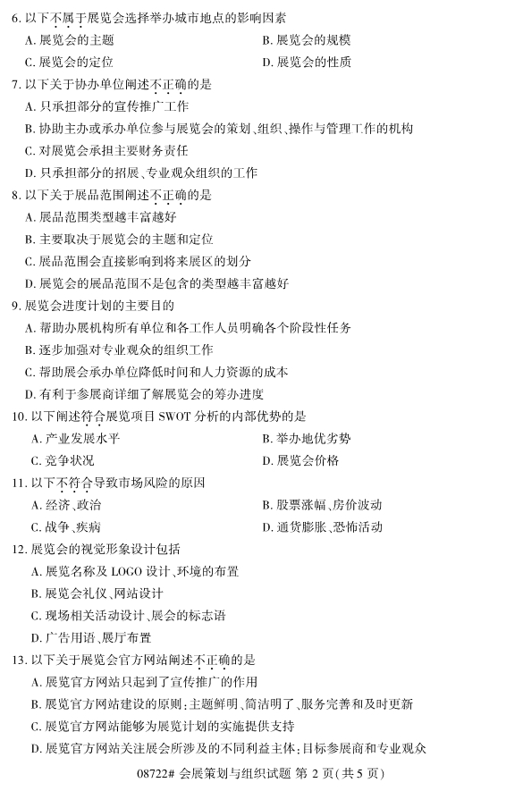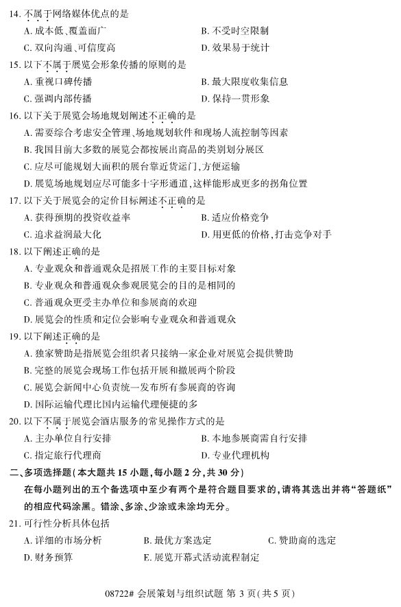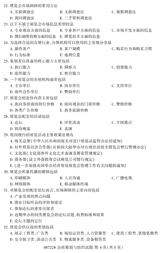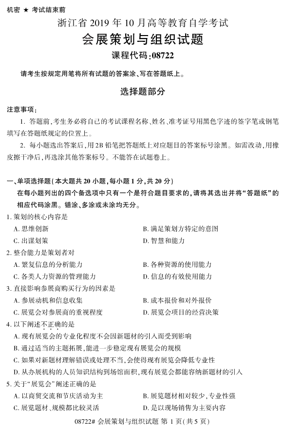 • 所在位置:浙江自考网 > 自考试卷 > 全国2019年10月自考08722会展策划与组织试题