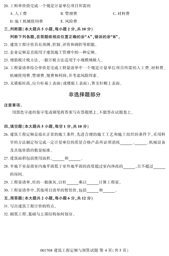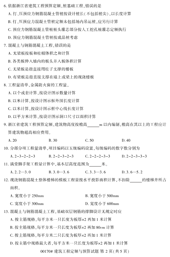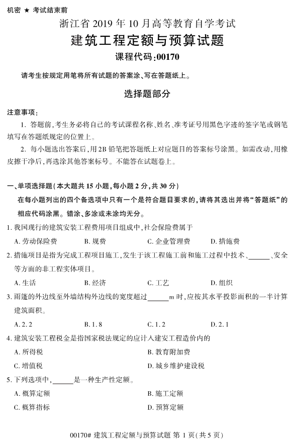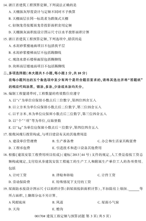 • 所在位置:浙江自考网 > 自考试卷 > 全国2019年10月自考00170建筑工程定额与预算试题